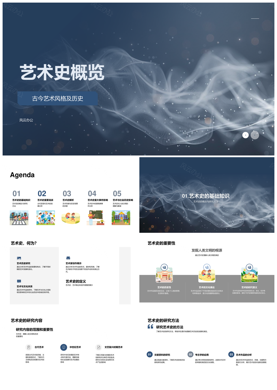 艺术史演进古代中世纪现代风格背景研究方法书籍PPT模板推荐
