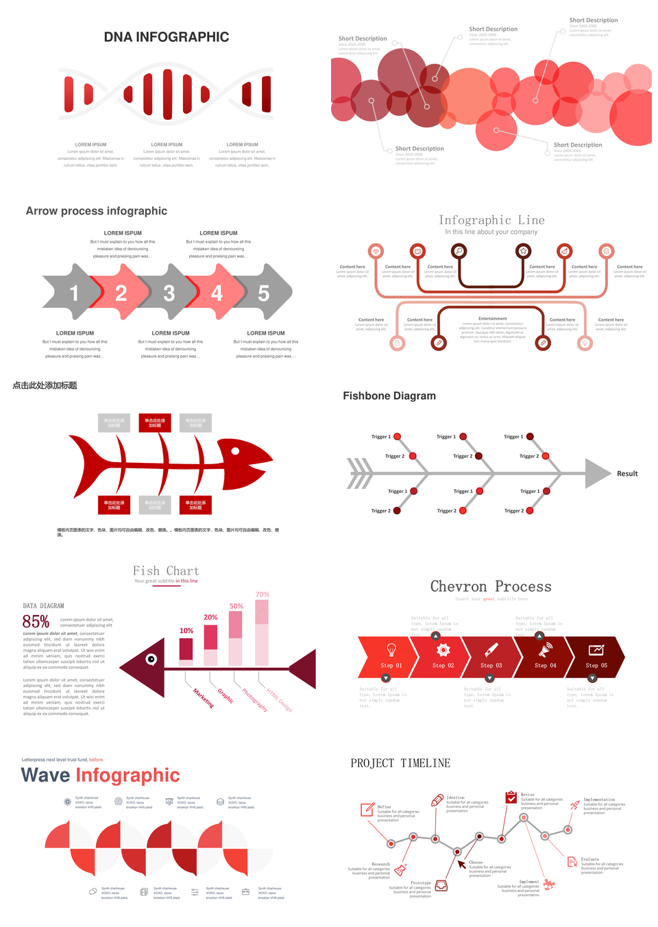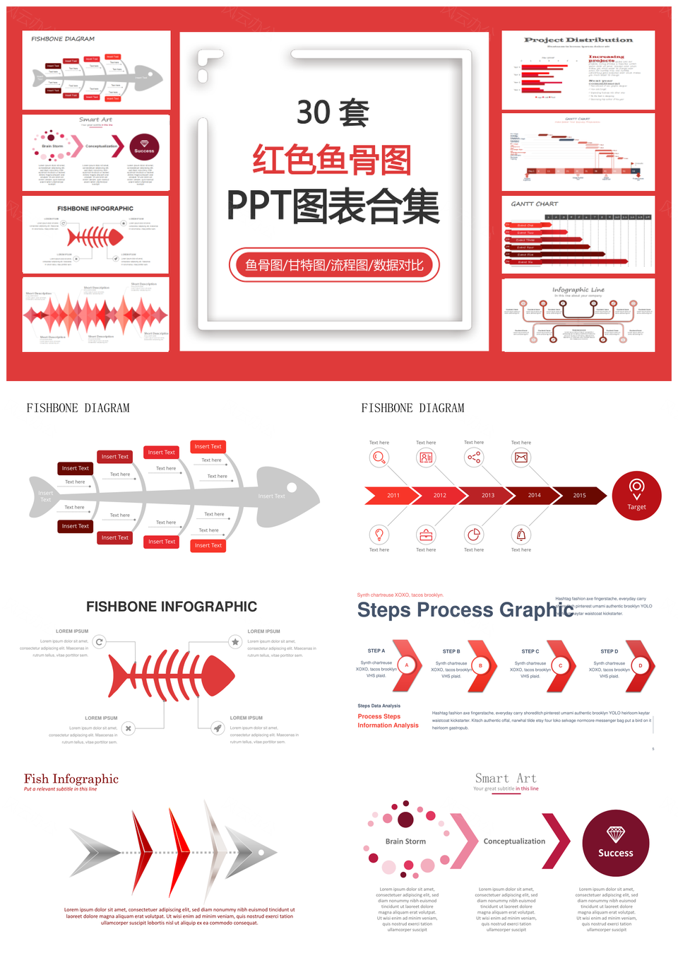 红色鱼骨图PPT模板
