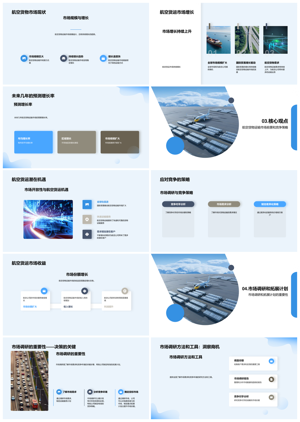 风云办公提供的航空货运市场策略优势与未来交通因素PPT模板,下载格式为pptx,一共23页,作品中文字及图均可以修改和编辑,图片更改请在作品中右键图片并更换,文字修改请直接点击文字进行修改。