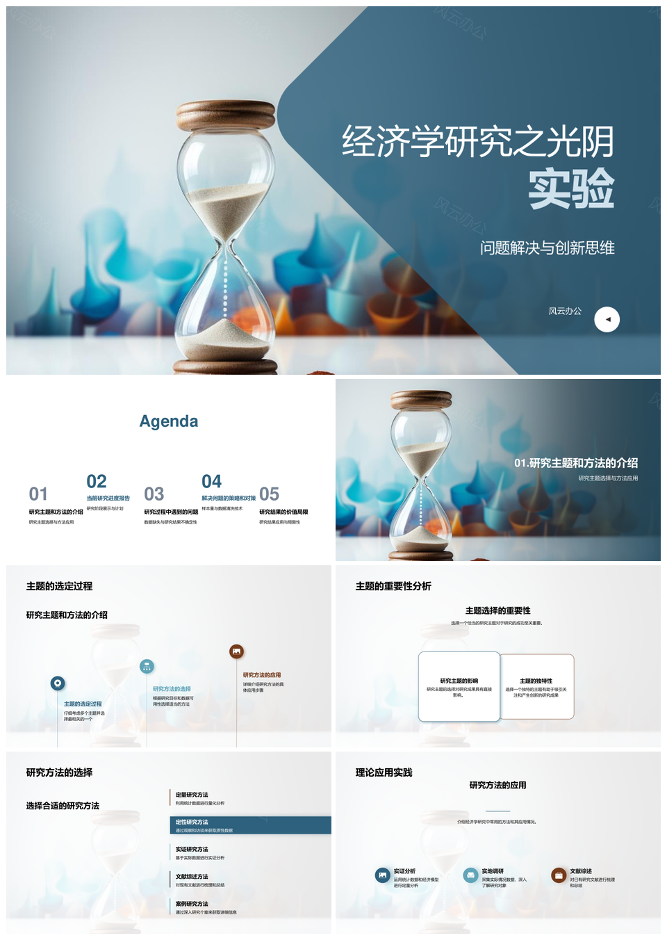 风云办公提供的经济学光阴沙漏实验数据问题创新研究PPT模板,下载格式为pptx,一共33页,作品中文字及图均可以修改和编辑,图片更改请在作品中右键图片并更换,文字修改请直接点击文字进行修改。
