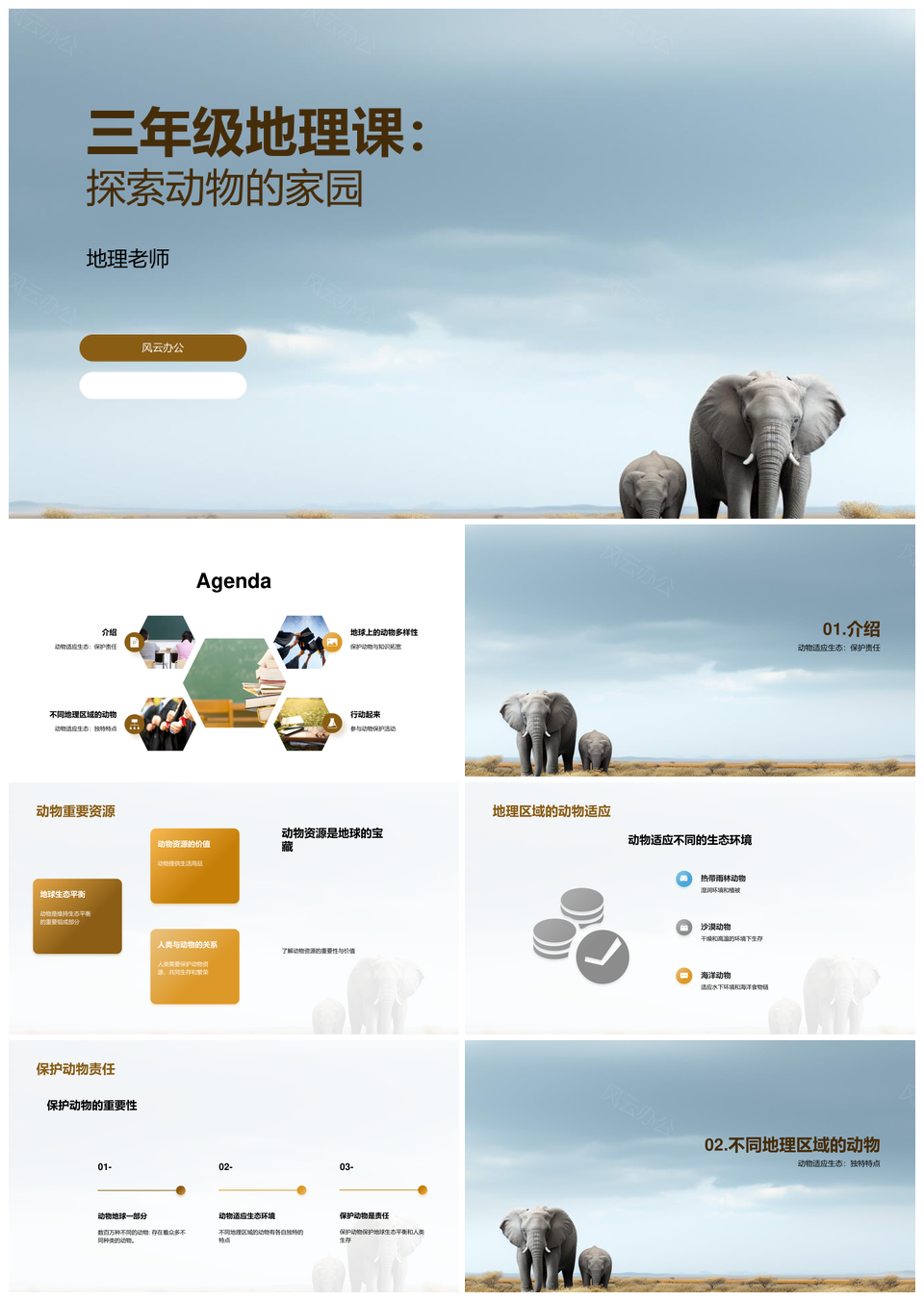 风云办公提供的三年级地理课探秘非洲大象生态家园PPT模板,下载格式为pptx,一共22页,作品中文字及图均可以修改和编辑,图片更改请在作品中右键图片并更换,文字修改请直接点击文字进行修改。