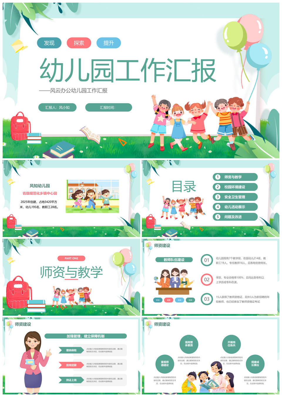 风云办公提供的2025绿色卡通幼儿园学期工作汇报PPT模板,下载格式为pptx,一共26页,作品中文字及图均可以修改和编辑,图片更改请在作品中右键图片并更换,文字修改请直接点击文字进行修改。