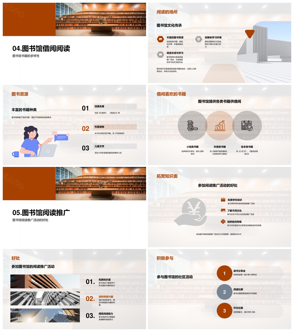 风云办公提供的小学生参观图书馆功能区域导游活动PPT模板,下载格式为pptx,一共26页,作品中文字及图均可以修改和编辑,图片更改请在作品中右键图片并更换,文字修改请直接点击文字进行修改。