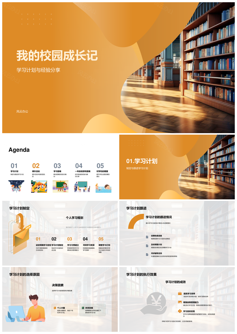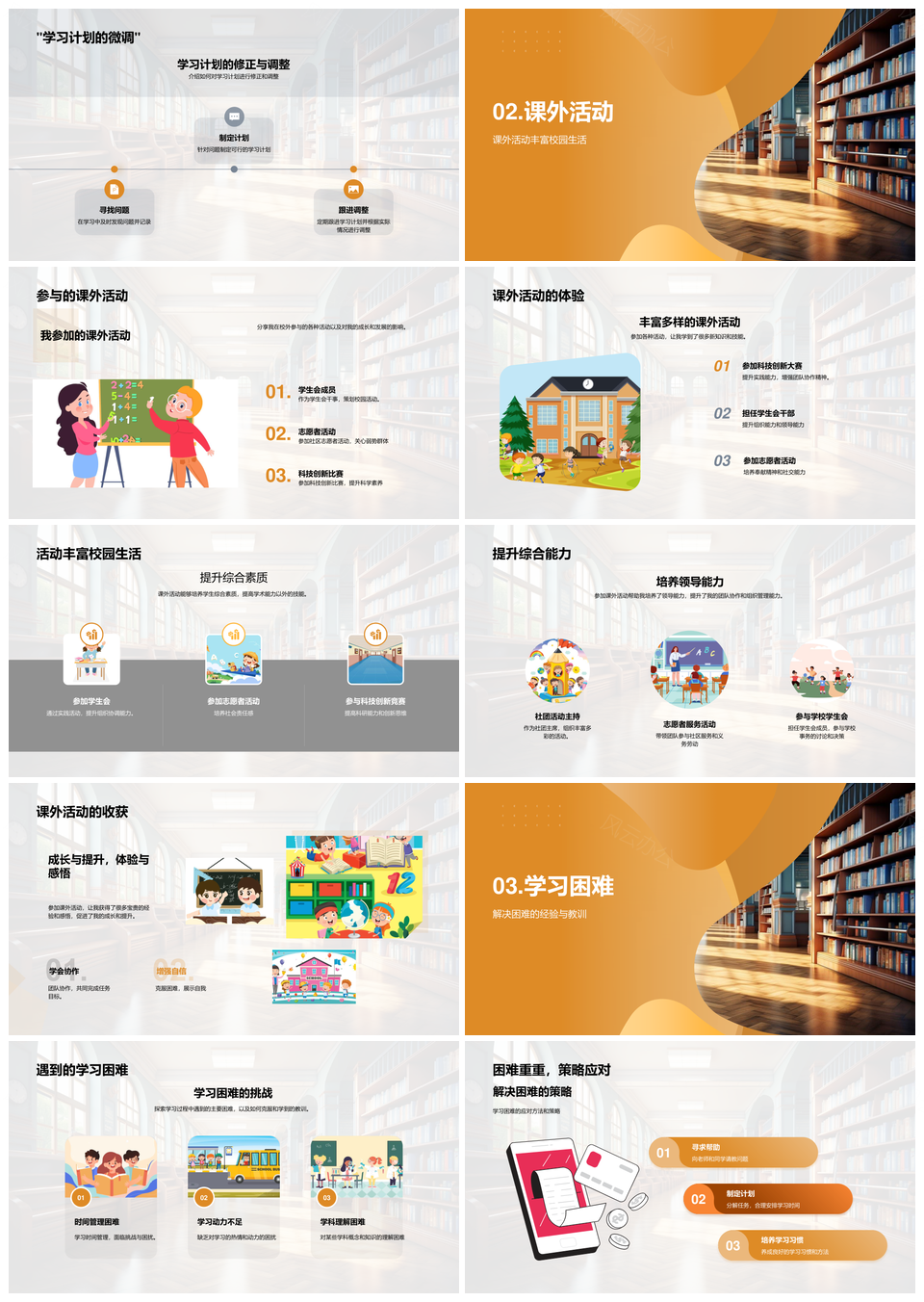 2025校园成长学年计划活动收获与挑战PPT模板推荐