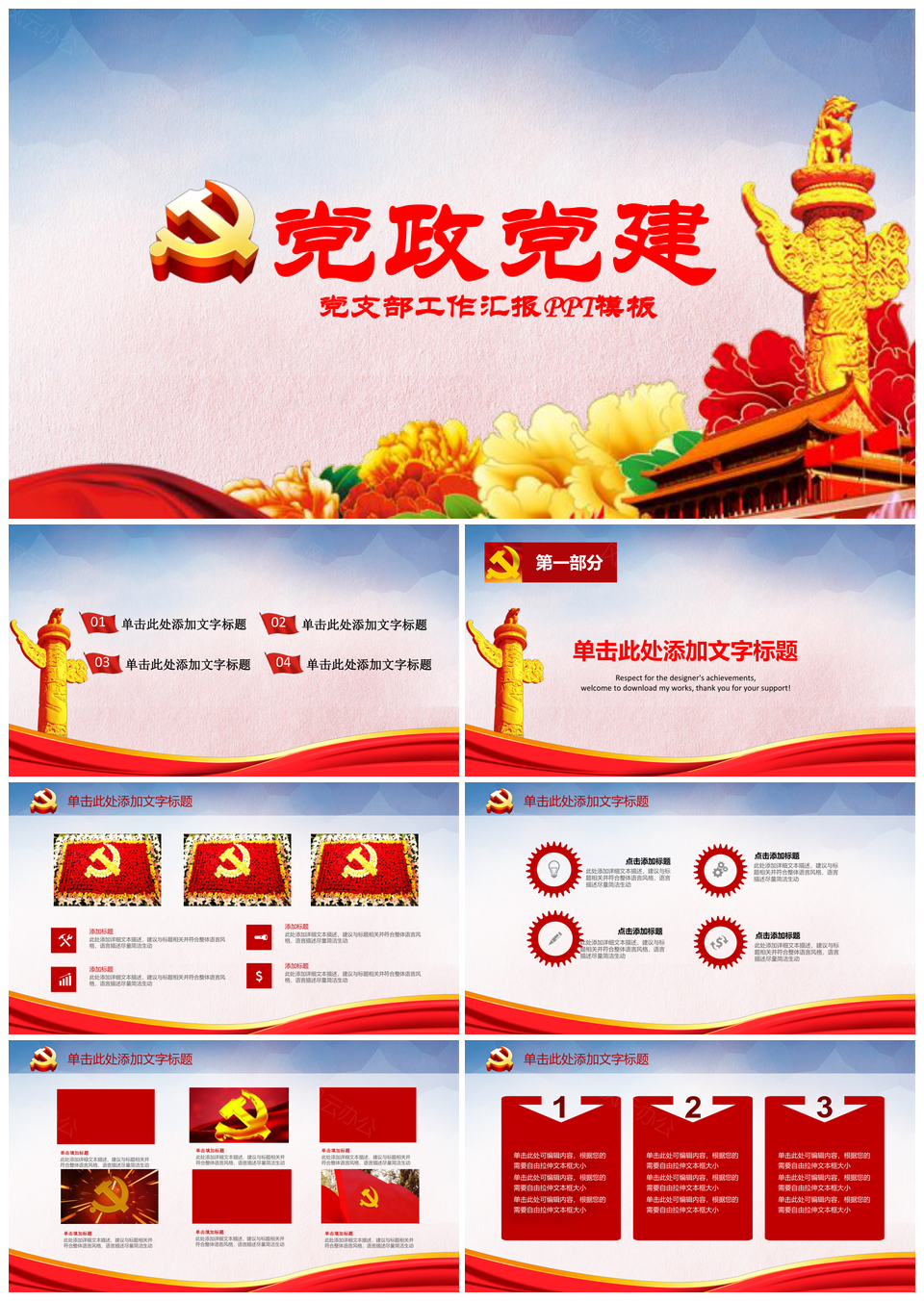 党政红色基层党委党支部党建工作汇报工作总结PPT模板