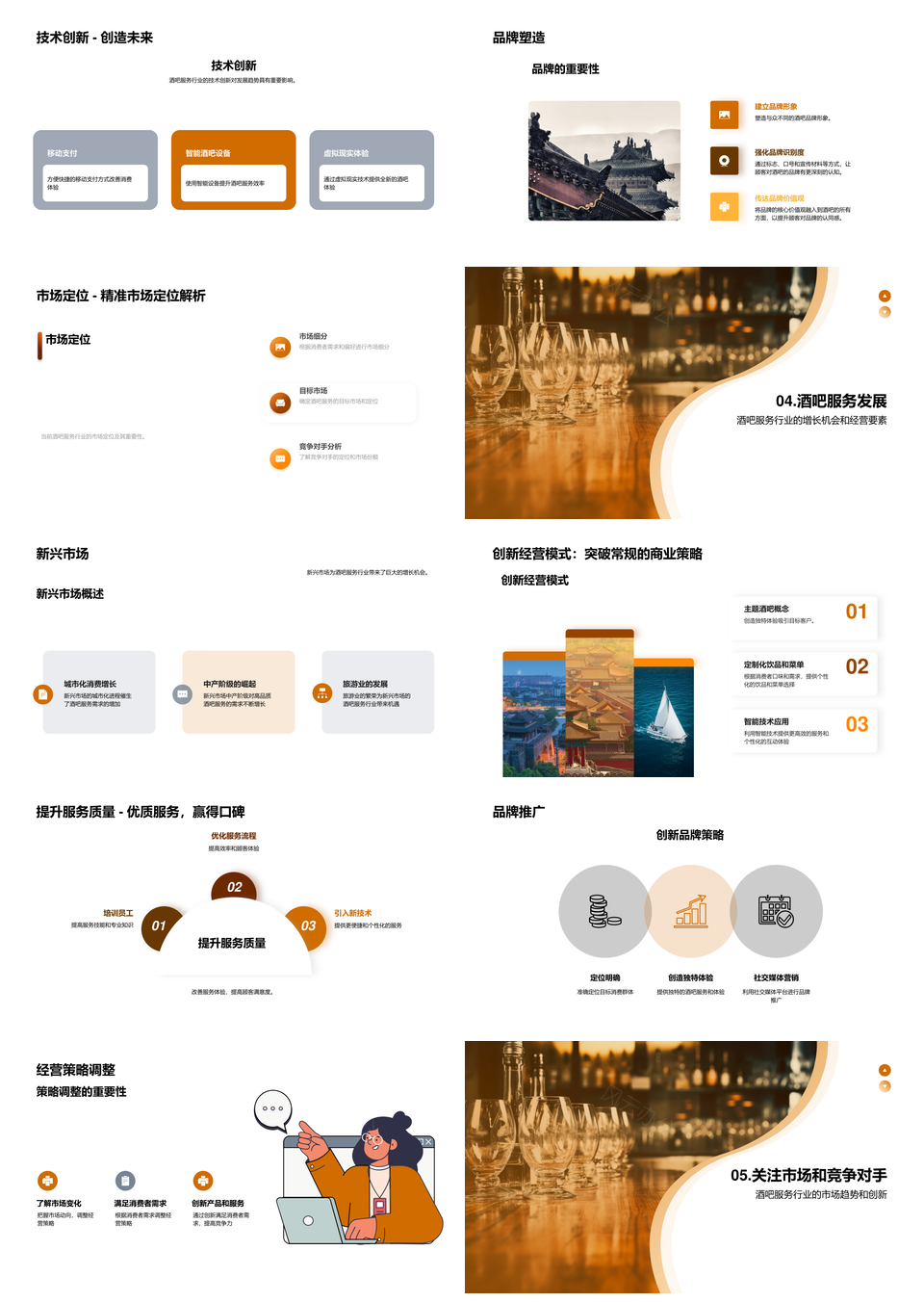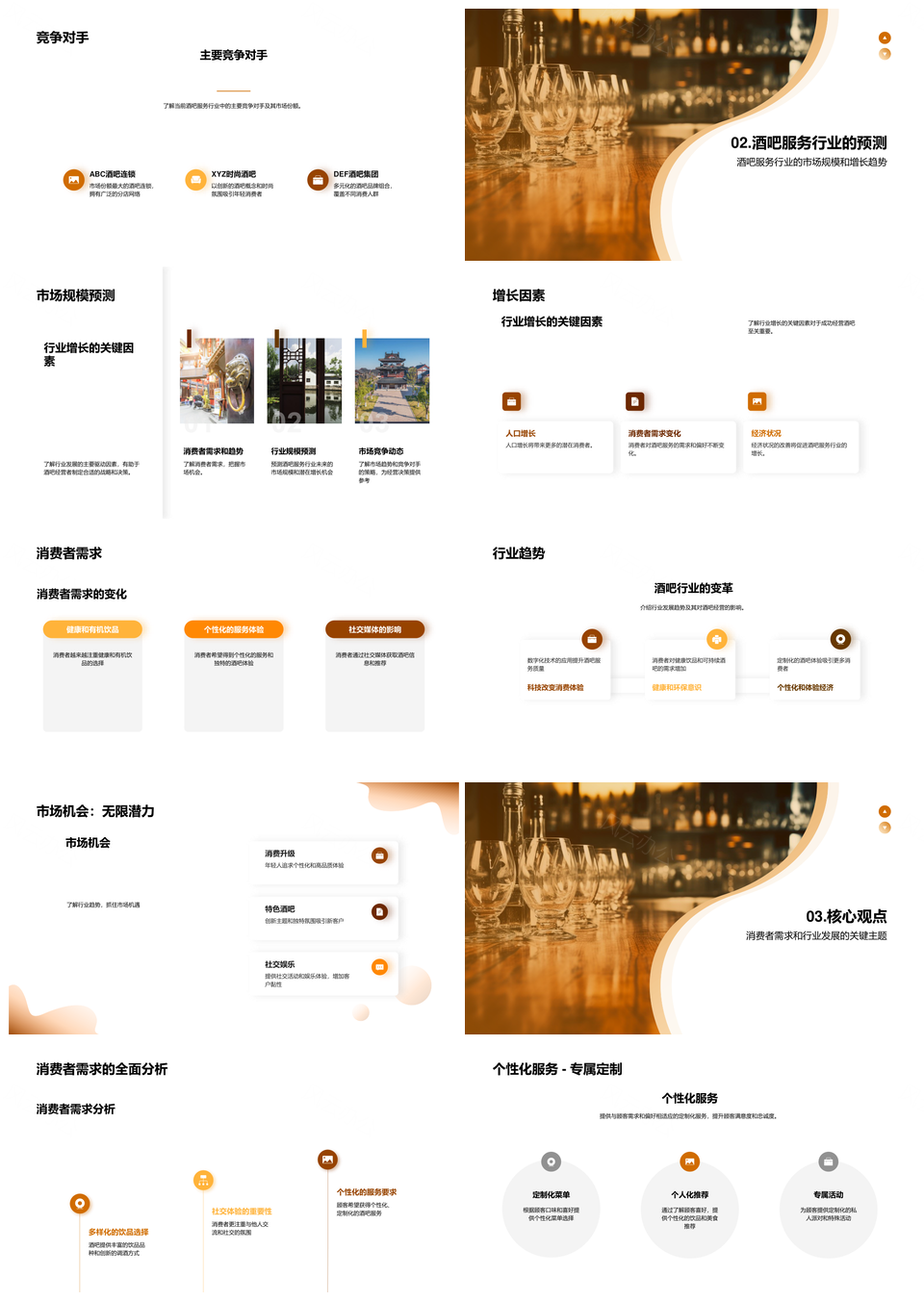 这是一张酒吧业发展趋势分析规模增长竞争份额吧台PPT模板,包含酒吧业、发展趋势、分析、规模增长、竞争份额、吧台等主题内容,也可用作酒吧业发展趋势分析、发展趋势分析规模、趋势分析规模增长、分析规模增长竞争、规模增长竞争份额、增长竞争份额吧台、酒吧业发展趋势、发展趋势分析、趋势分析规模、分析规模增长、规模增长竞争、增长竞争份额、竞争份额吧台、酒吧业发展、发展趋势、趋势分析、分析规模、规模增长、增长竞争、竞争份额、份额吧台等PPT场景使用。 风云办公提供的酒吧业发展趋势分析规模增长竞争份额吧台PPT模板,下载格式为pptx,一共33页,作品中文字及图均可以修改和编辑,图片更改请在作品中右键图片并更换,文字修改请直接点击文字进行修改。