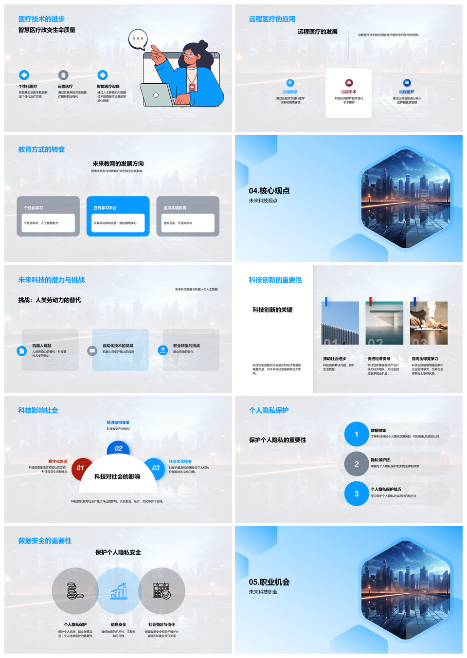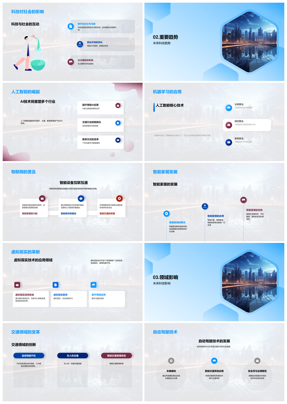 这是一张未来科技人工智能物联网虚拟现实驱动交通医疗城市PPT模板,包含未来、科技、人工智能、物联网、虚拟现实、驱动、交通、医疗、城市等主题内容,也可用作未来科技人工智能物联网虚拟现实、人工智能物联网虚拟现实驱动、物联网虚拟现实驱动交通、虚拟现实驱动交通医疗、驱动交通医疗城市、未来科技人工智能物联网、人工智能物联网虚拟现实、物联网虚拟现实驱动、虚拟现实驱动交通、驱动交通医疗、交通医疗城市、未来科技人工智能、人工智能物联网、物联网虚拟现实、虚拟现实驱动等PPT场景使用。 风云办公提供的未来科技人工智能物联网虚拟现实驱动交通医疗城市PPT模板,下载格式为pptx,一共33页,作品中文字及图均可以修改和编辑,图片更改请在作品中右键图片并更换,文字修改请直接点击文字进行修改。
