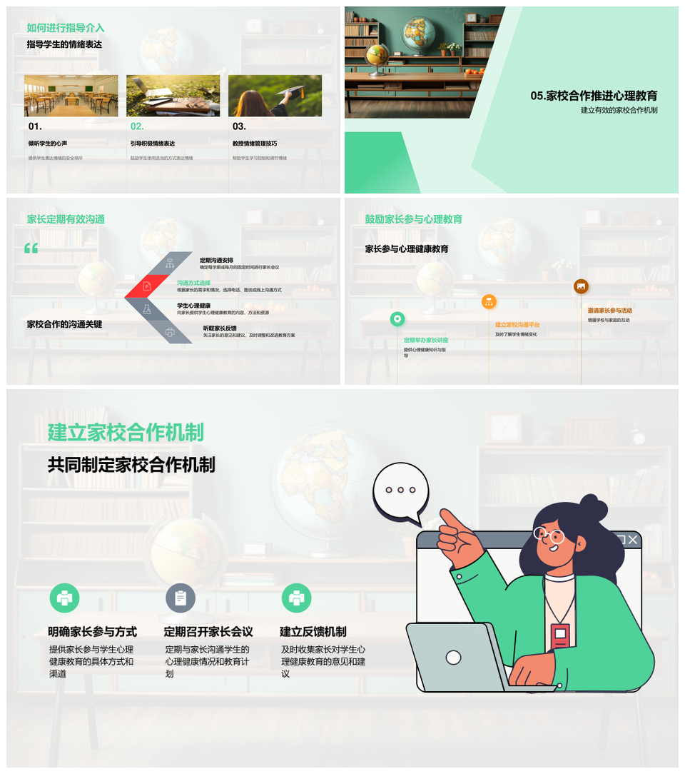 五年级心理健康教育情绪人际家校合作实践PPT模板推荐