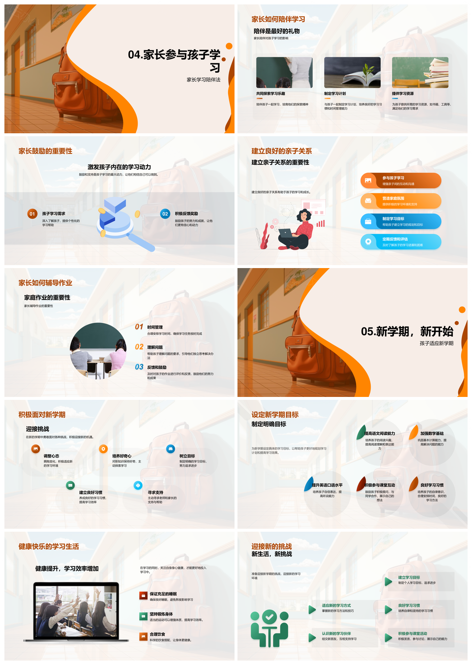 风云办公提供的新生家长伴学适应校园新学期学习计划PPT模板,下载格式为pptx,一共28页,作品中文字及图均可以修改和编辑,图片更改请在作品中右键图片并更换,文字修改请直接点击文字进行修改。