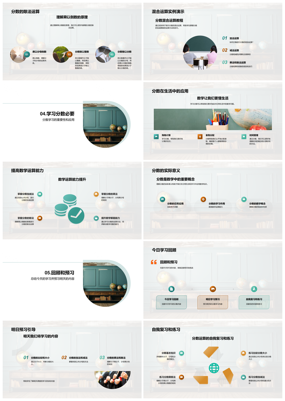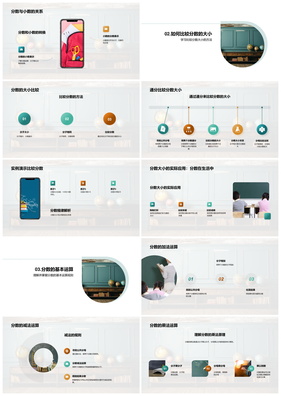 风云办公提供的分数基础运算比较与通分加减乘除PPT模板,下载格式为pptx,一共28页,作品中文字及图均可以修改和编辑,图片更改请在作品中右键图片并更换,文字修改请直接点击文字进行修改。