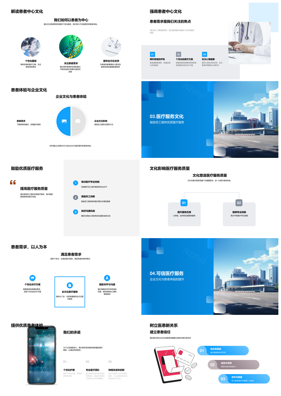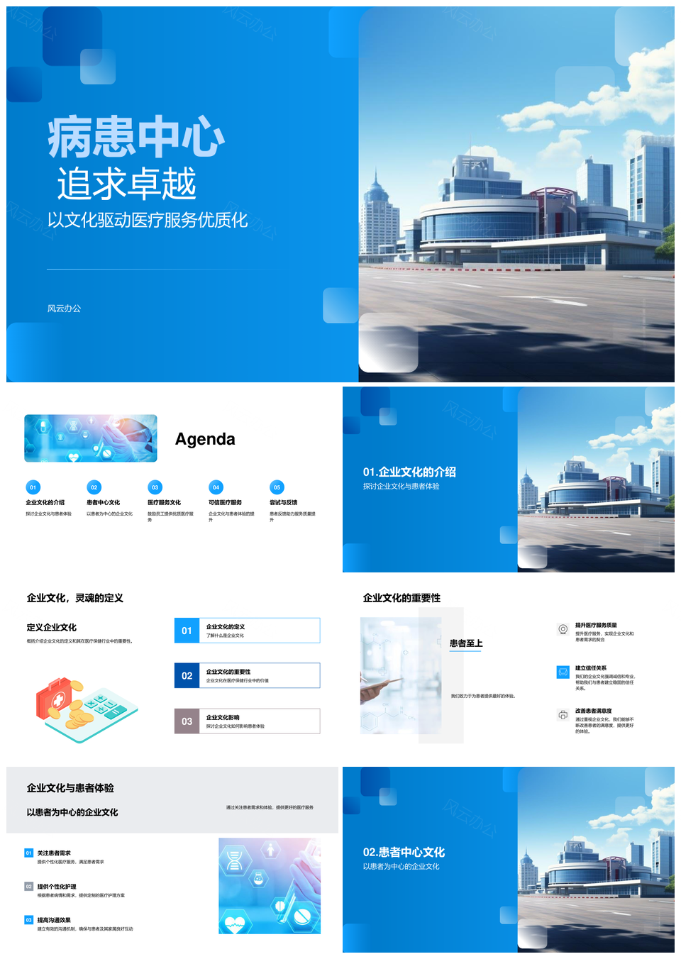 风云办公提供的心系患者卓越服务激励员工文化引领PPT模板,下载格式为pptx,一共23页,作品中文字及图均可以修改和编辑,图片更改请在作品中右键图片并更换,文字修改请直接点击文字进行修改。