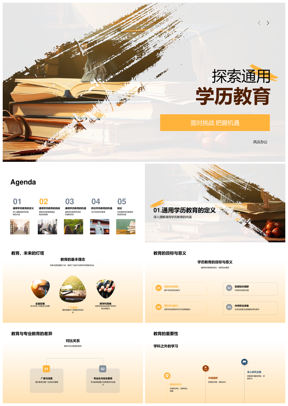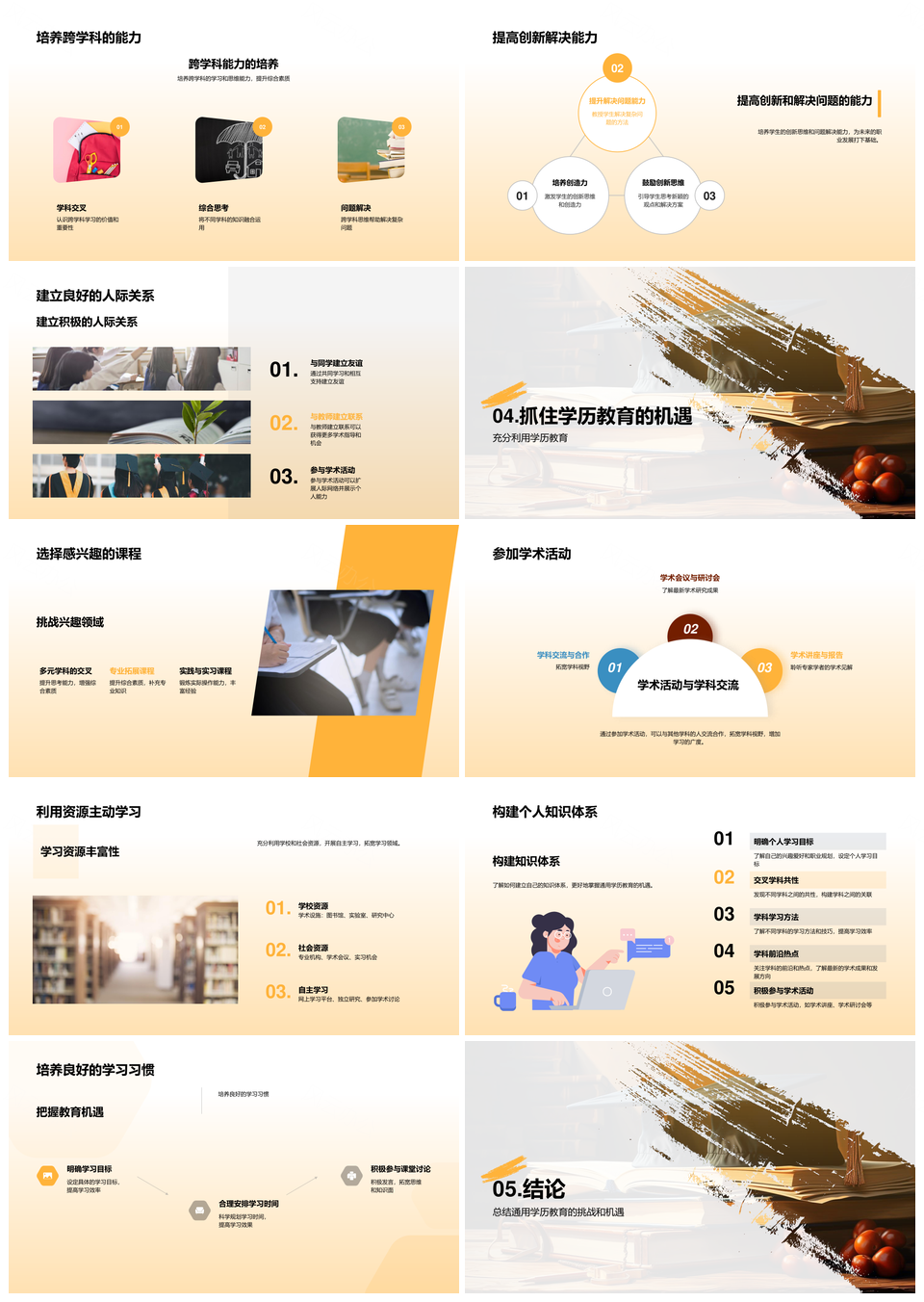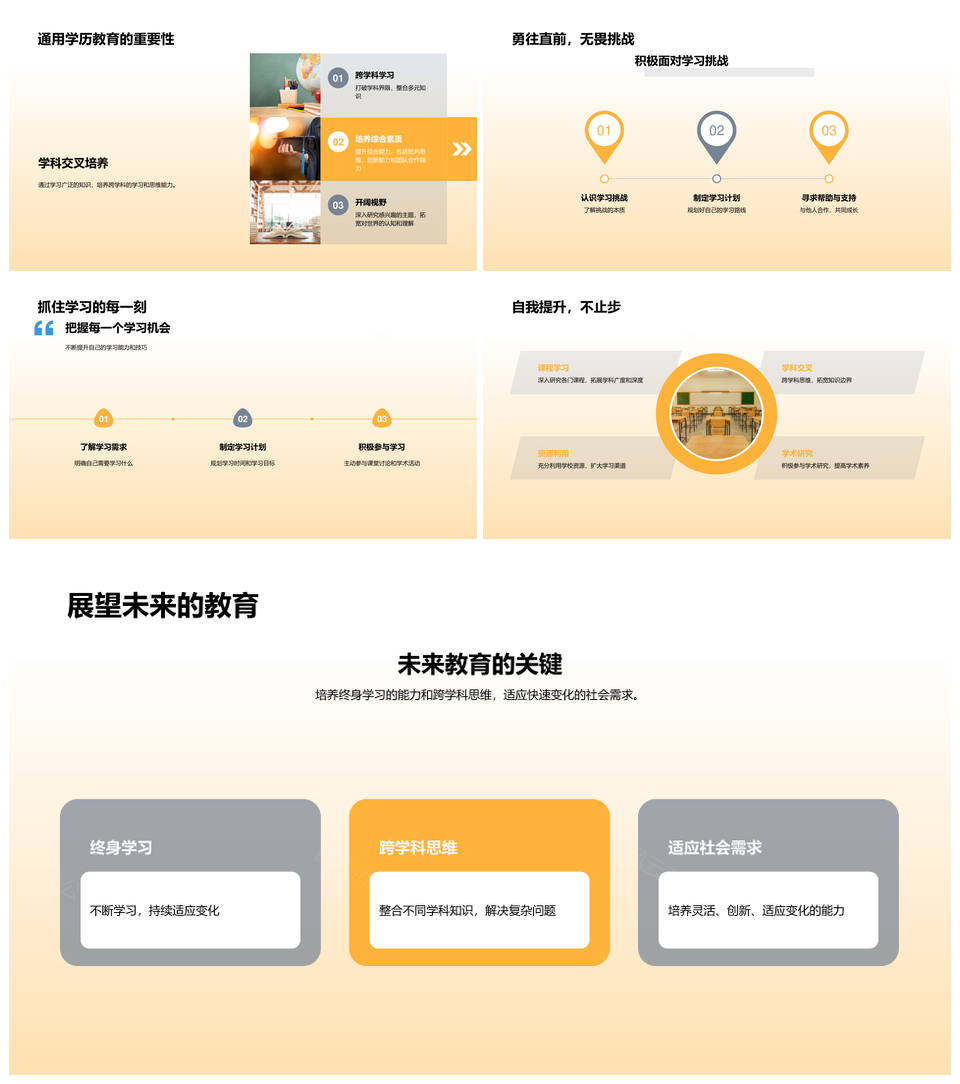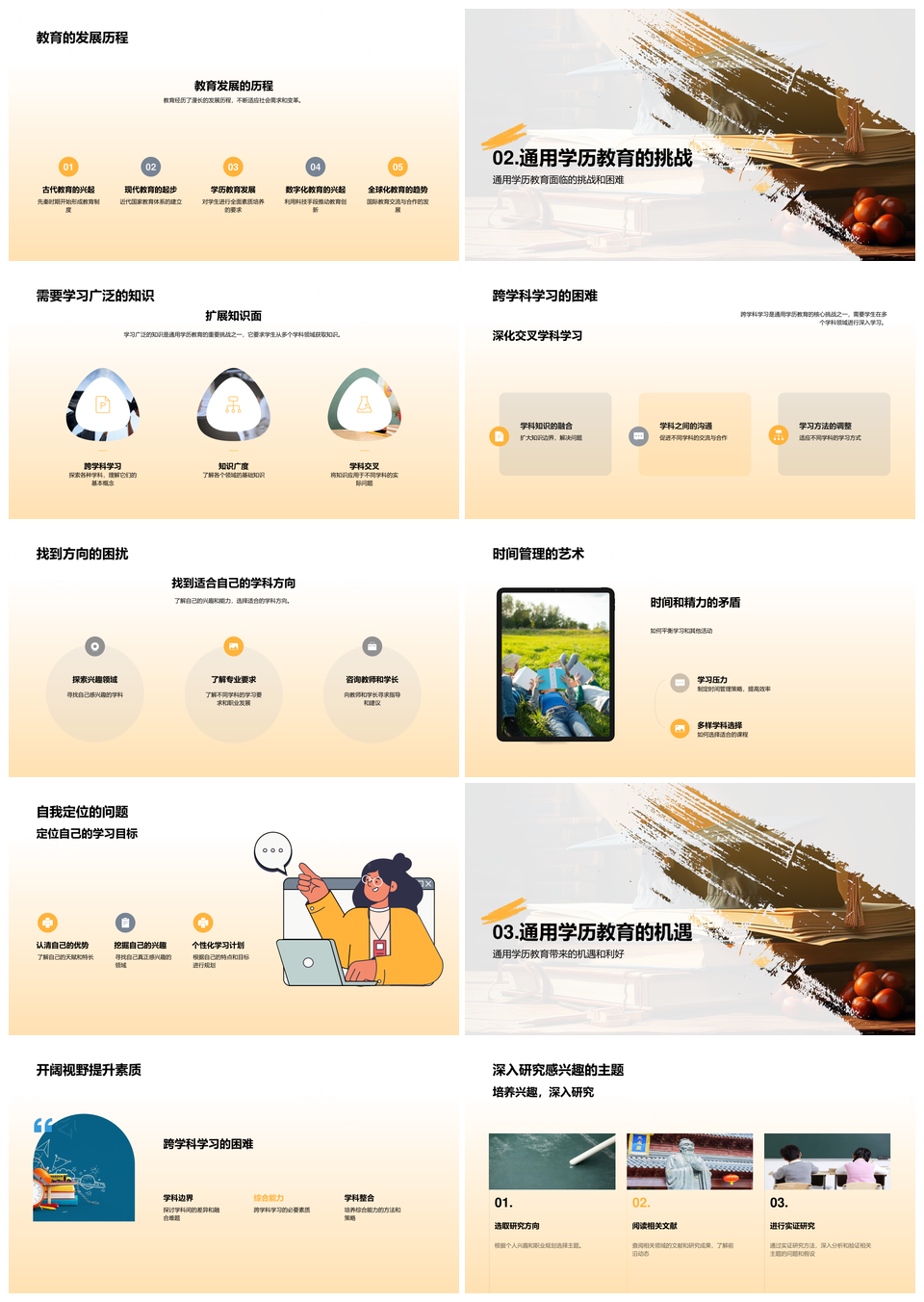 通用学历教育跨学科挑战机遇与综素探索PPT模板推荐