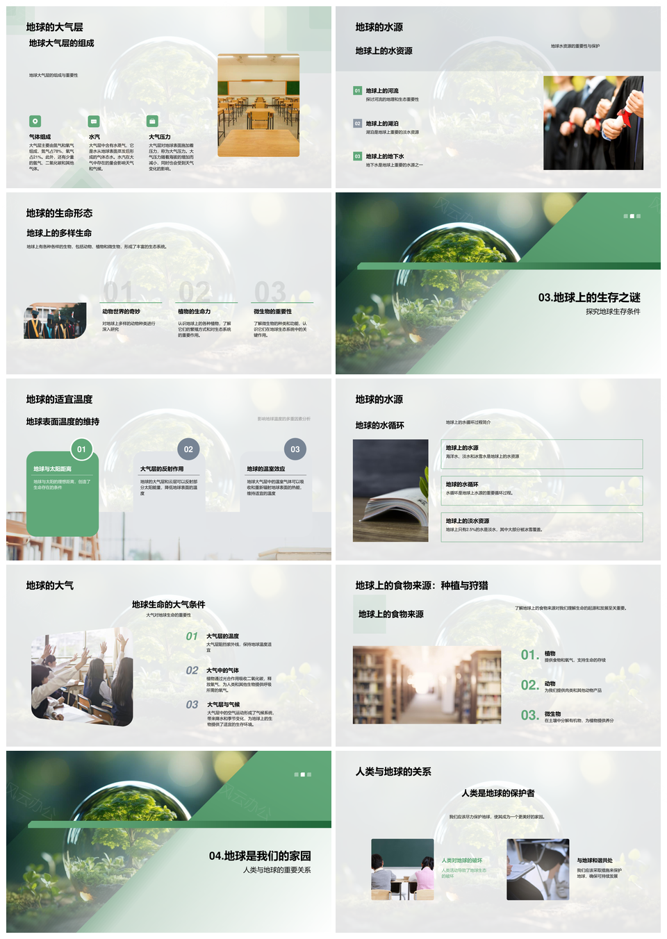 这是一张珍爱地球大气水源生命温度食物人类共护PPT模板,包含地球、大气、水源、生命、温度、食物、人类等主题内容,也可用作珍爱地球大气水源、地球大气水源生命、水源生命温度食物、温度食物人类共护、地球大气水源、大气水源生命温度、生命温度食物人类、水源生命温度、温度食物人类、食物人类共护、珍爱地球、地球大气、大气水源、生命温度、人类共护等PPT场景使用。 风云办公提供的珍爱地球大气水源生命温度食物人类共护PPT模板,下载格式为pptx,一共24页,作品中文字及图均可以修改和编辑,图片更改请在作品中右键图片并更换,文字修改请直接点击文字进行修改。