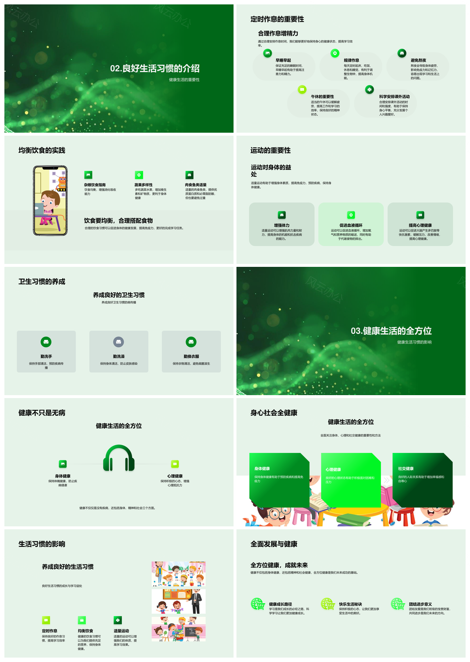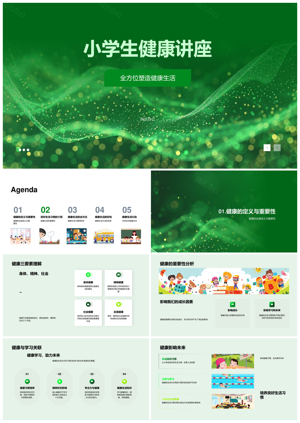 这是一张小学生健康全面重要性作息饮食运动卫生讲座PPT模板,包含小学生、健康、全面、重要性、作息、饮食、运动、卫生、讲座等主题内容,也可用作小学生健康全面重要性、健康全面重要性作息、全面重要性作息饮食、重要性作息饮食运动、作息饮食运动卫生、饮食运动卫生讲座、卫生讲座、小学生健康作息饮食、健康作息饮食运动、作息饮食运动卫生、饮食运动卫生讲座、小学生健康、健康全面重要性、作息饮食运动、卫生讲座等PPT场景使用。 风云办公提供的小学生健康全面重要性作息饮食运动卫生讲座PPT模板,下载格式为pptx,一共28页,作品中文字及图均可以修改和编辑,图片更改请在作品中右键图片并更换,文字修改请直接点击文字进行修改。