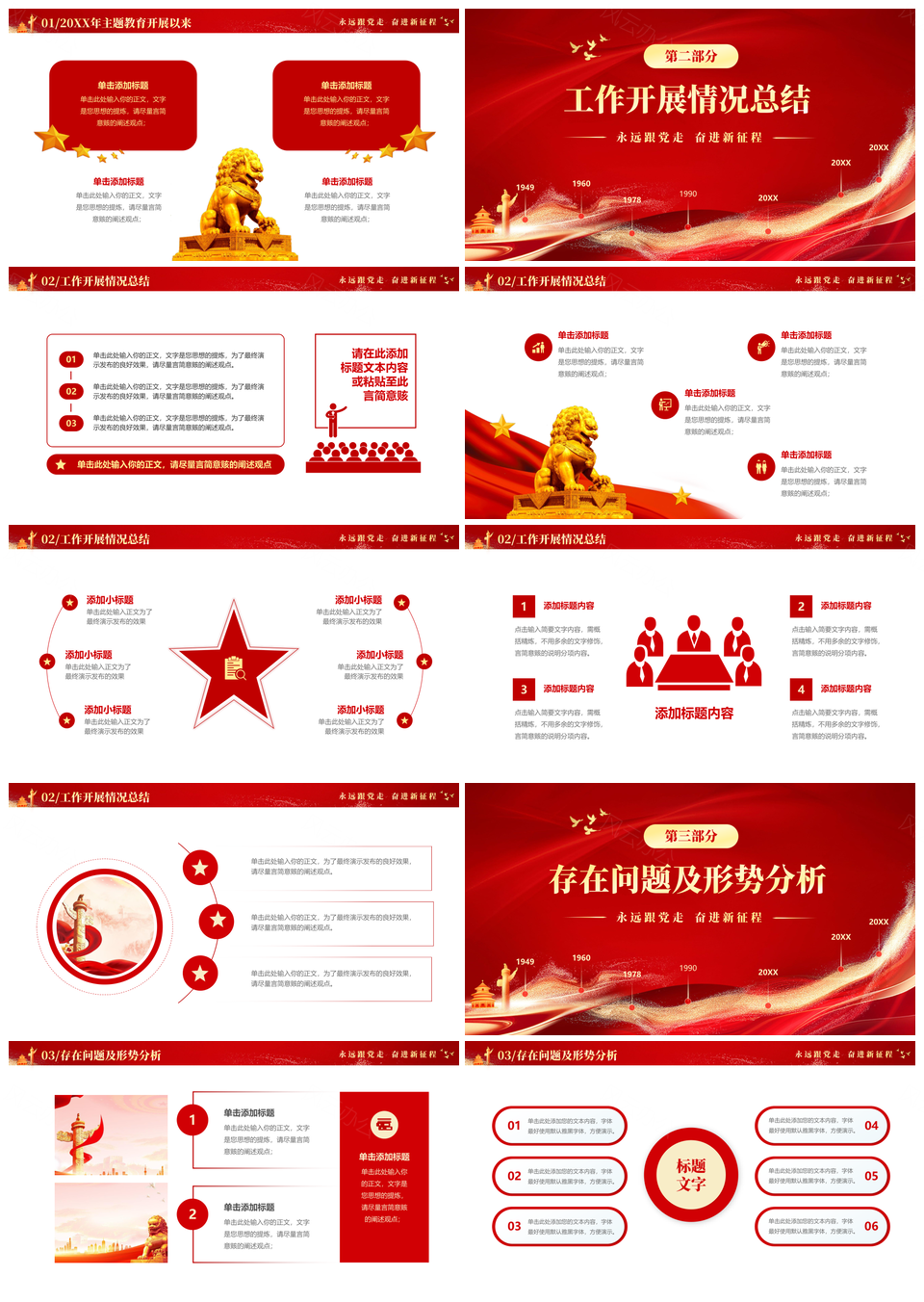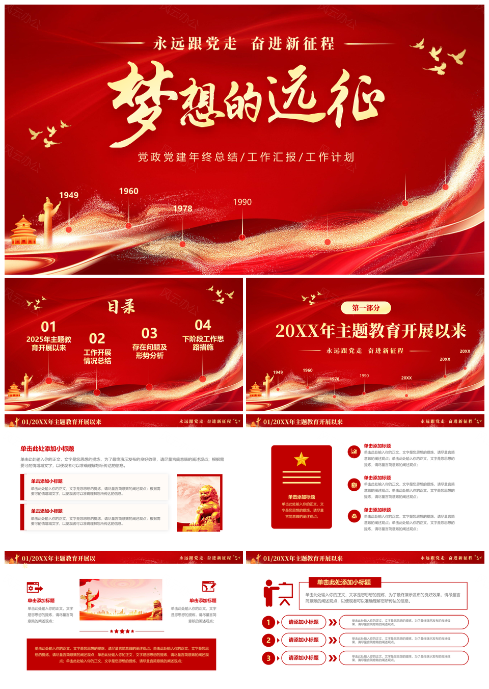 红色大气2024党建年终总结汇报工作计划PPT模板