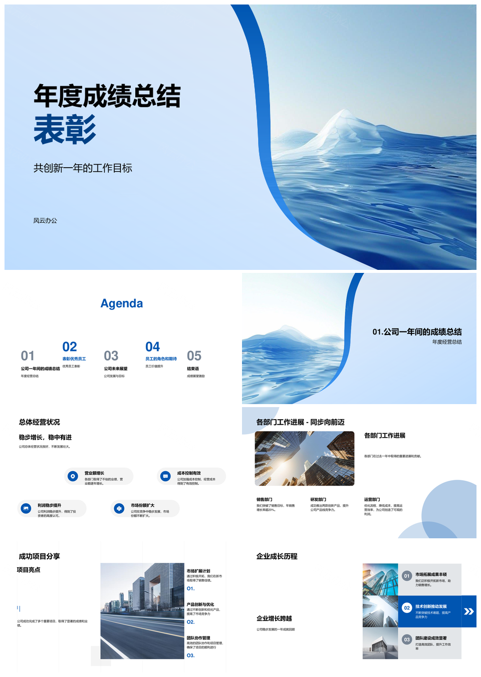 这款商务风PPT模板以浅蓝和海洋蓝沉稳色调,呈现专业又不失灵动的视觉层次,精准匹配高端会议、提案路演等场景需求。基于模块化设计理念,采用大气留白与精致排版平衡信息密度,分层结构支持灵活重组,满足核心内容的高效展示。内嵌矢量图形确保高清无损缩放,内置智能图表与版式库可快速套用,天蓝、雾霾灰等辅助色系为严谨框架增添呼吸感。所有元素均支持深度编辑,助您以简洁干练的视觉语言传达专业价值。