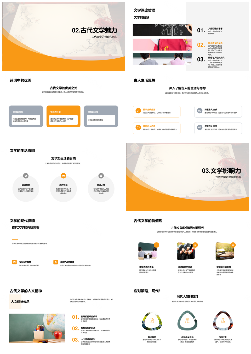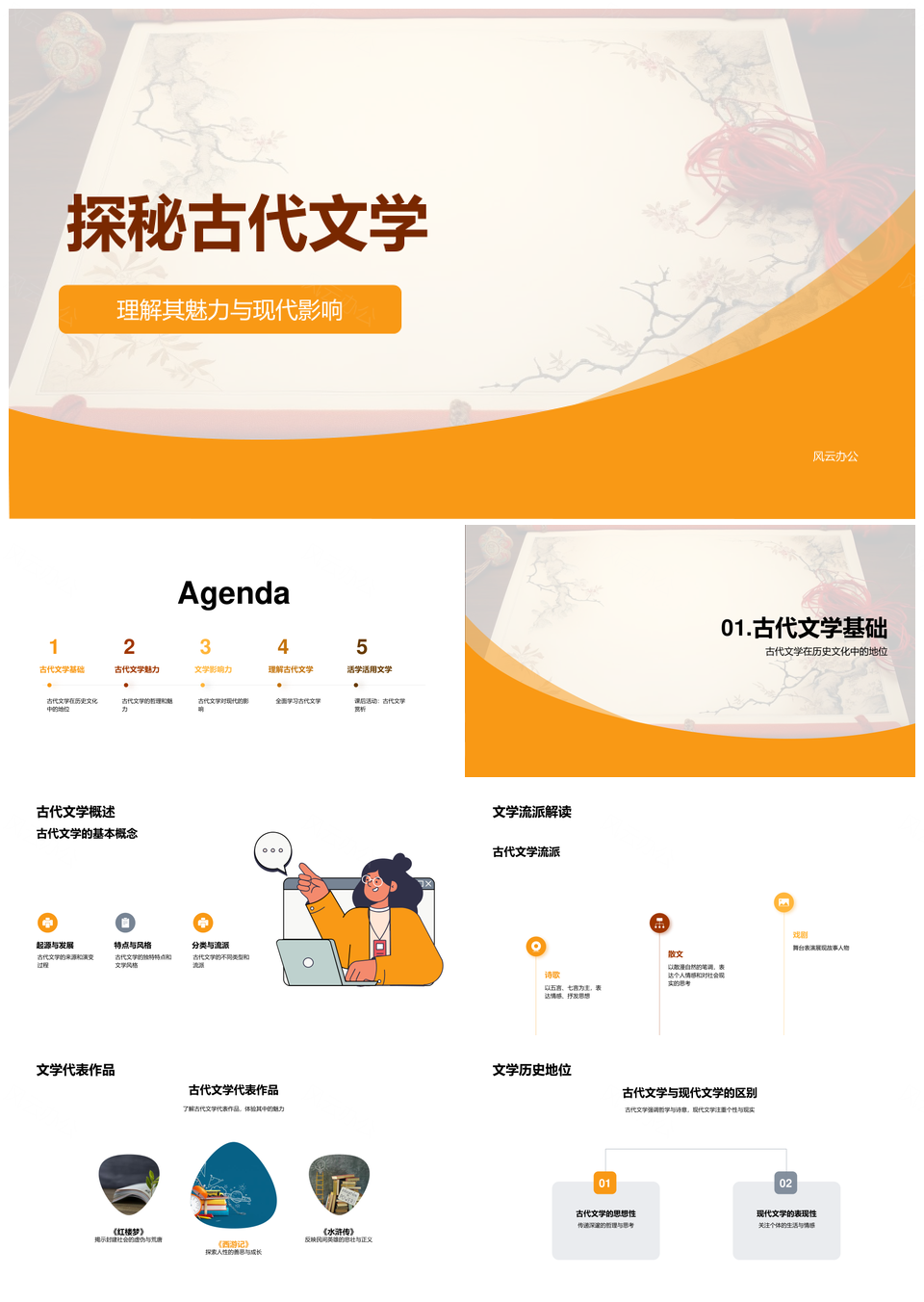 风云办公提供的古代文学流派文史哲卷探现代影响PPT模板,下载格式为pptx,一共28页,作品中文字及图均可以修改和编辑,图片更改请在作品中右键图片并更换,文字修改请直接点击文字进行修改。