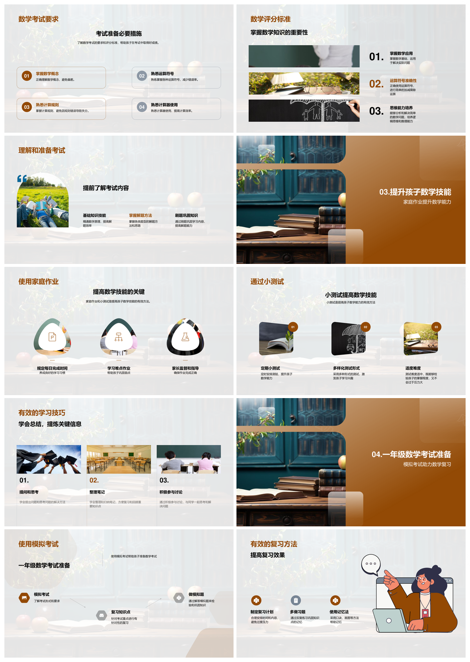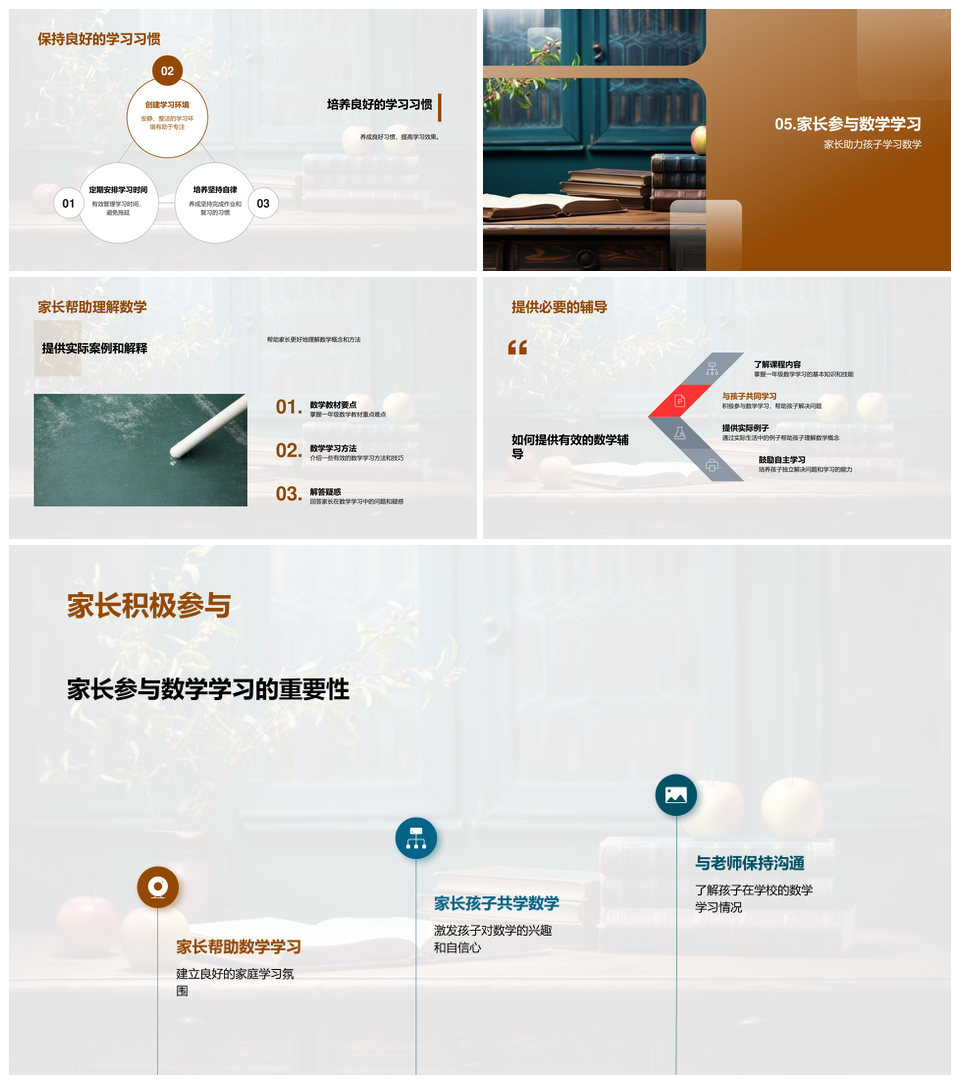 家长指导一年级数学课程学习考试技能提升PPT模板推荐