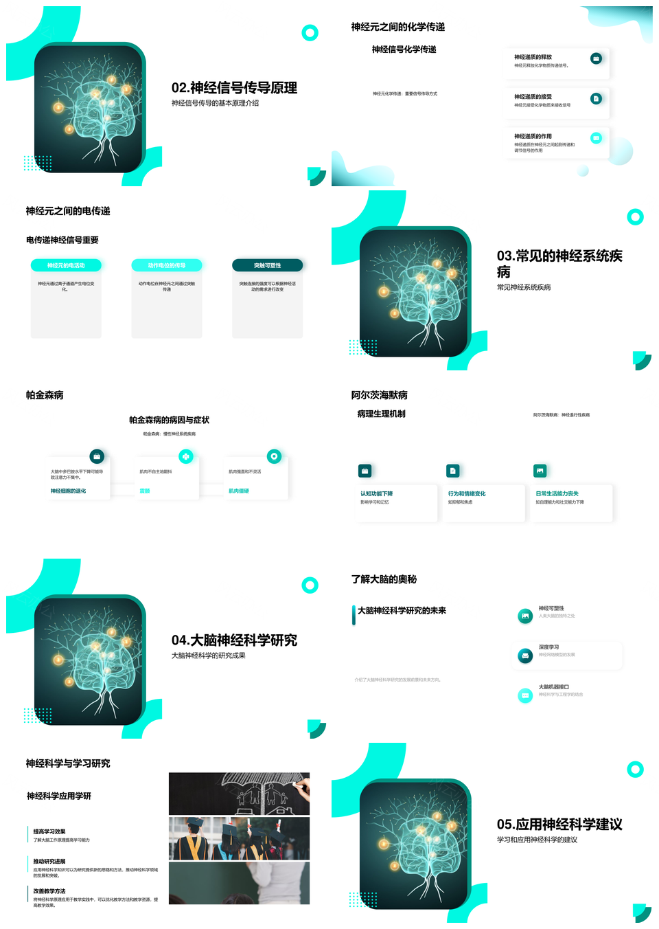 风云办公提供的大脑结构功能神经信号传导与疾病PPT模板,下载格式为pptx,一共20页,作品中文字及图均可以修改和编辑,图片更改请在作品中右键图片并更换,文字修改请直接点击文字进行修改。