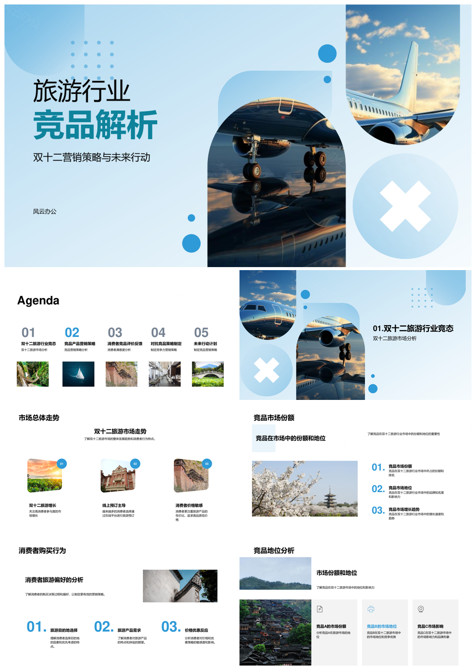 旅游竞品双十二策略市场消费产品营销分析PPT模板推荐