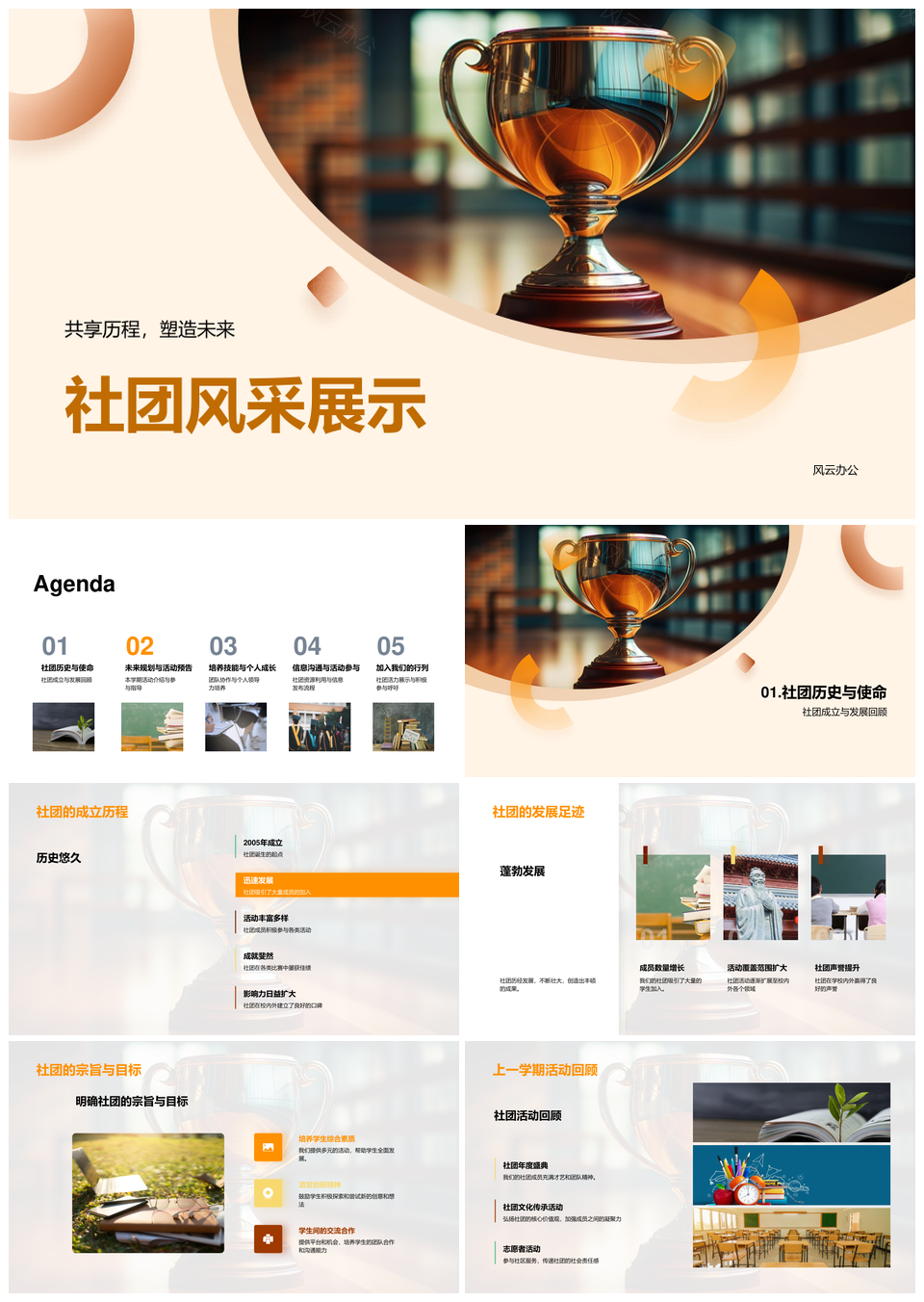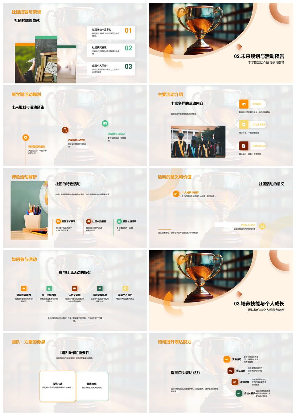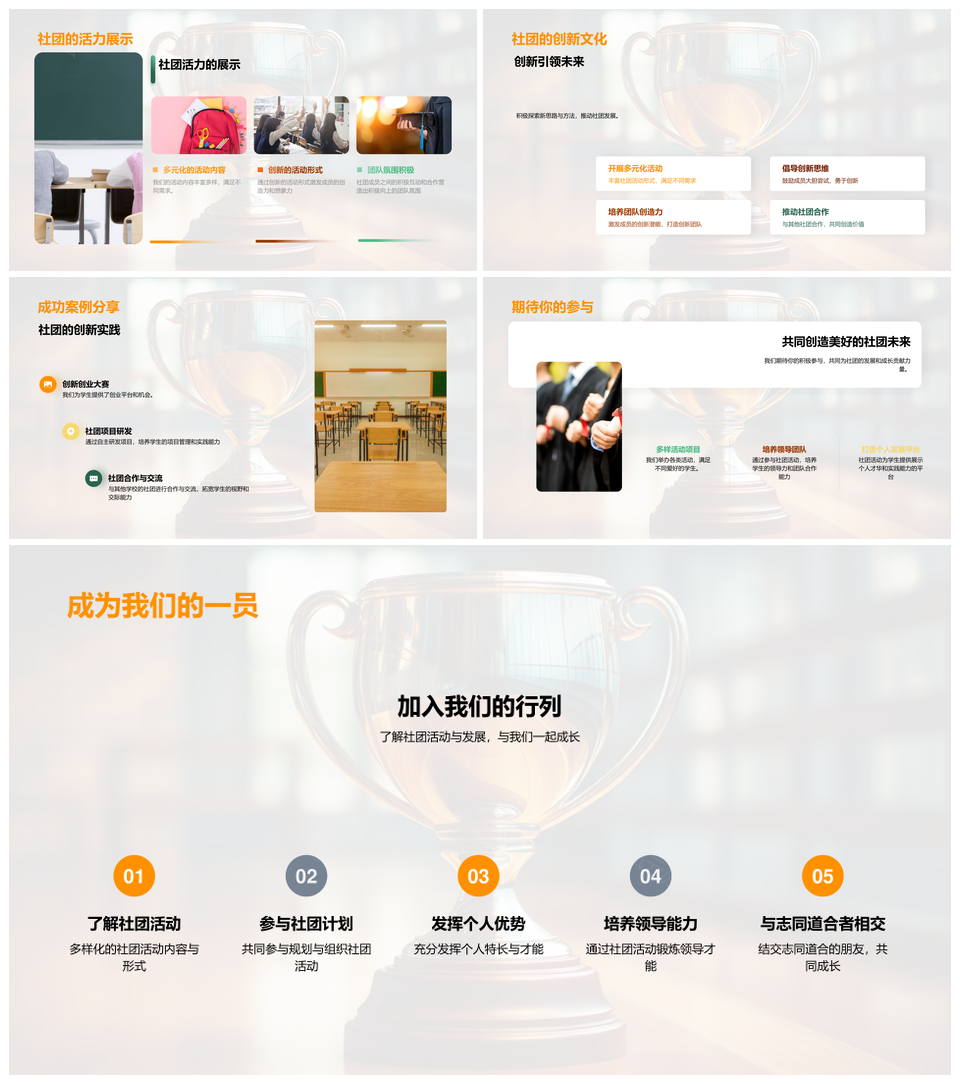 社团发展规划使命愿景活动成果成长展示PPT模板