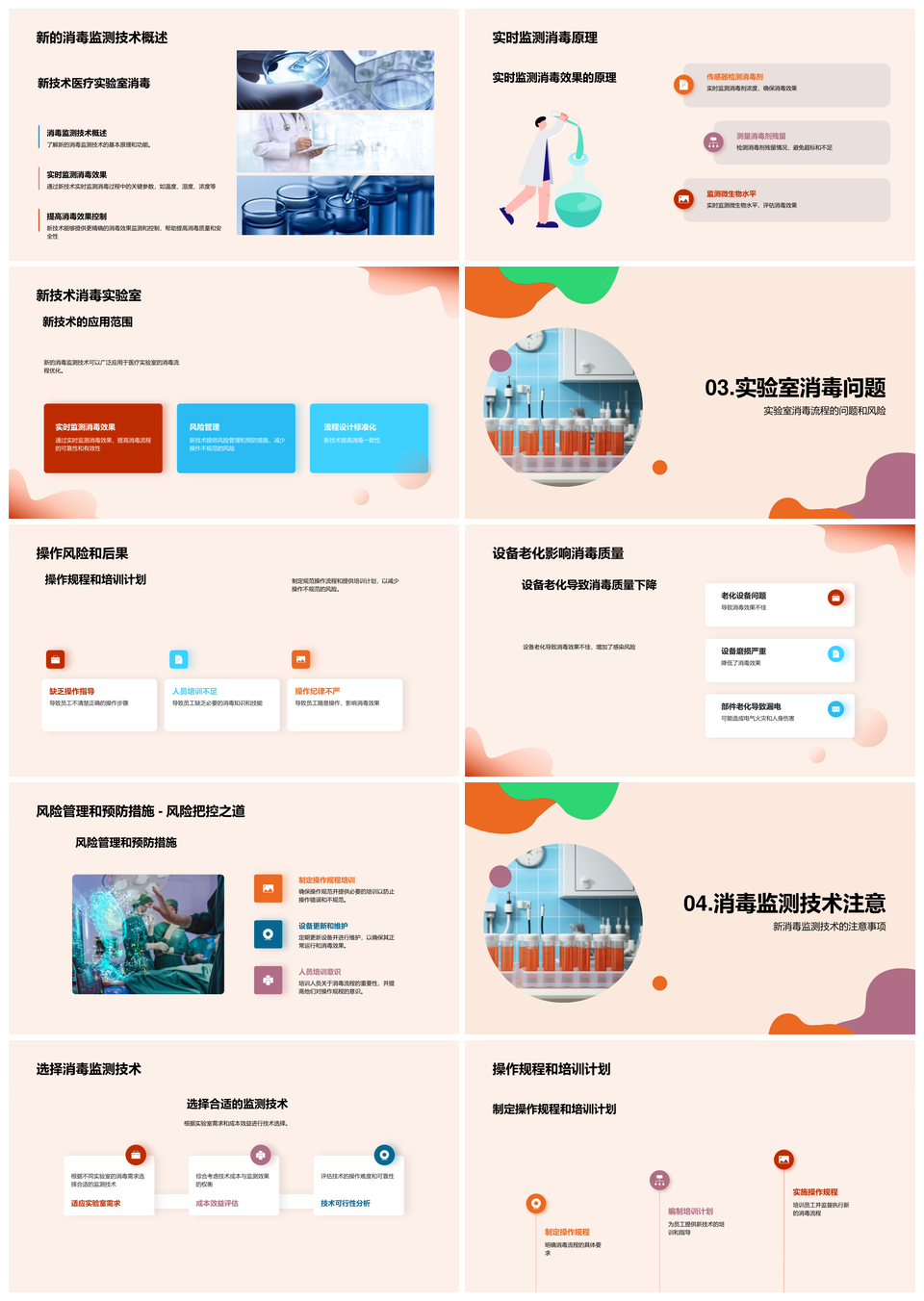 这是一张医疗实验室消毒流程优化与质控监测管理PPT模板,包含医疗实验室、消毒流程、优化、质控、监测、管理等主题内容,也可用作医疗实验室消毒流程优化、医疗实验室质控监测管理、实验室消毒流程优化质控、消毒流程优化质控监测管理、医疗消毒流程质控监测管理、医疗实验室质控监测管理优化、实验室消毒流程质控监测、消毒流程质控监测管理、医疗实验室消毒流程、医疗消毒流程优化、医疗质控监测管理、实验室质控监测管理、消毒流程优化质控、质控监测管理优化、消毒流程质控监测等PPT场景使用。 风云办公提供的医疗实验室消毒流程优化与质控监测管理PPT模板,下载格式为pptx,一共27页,作品中文字及图均可以修改和编辑,图片更改请在作品中右键图片并更换,文字修改请直接点击文字进行修改。