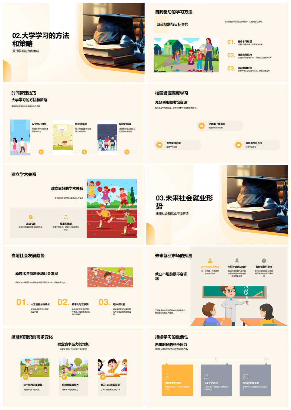 风云办公提供的大学生学业规划与高效就业策略指南PPT模板,下载格式为pptx,一共28页,作品中文字及图均可以修改和编辑,图片更改请在作品中右键图片并更换,文字修改请直接点击文字进行修改。