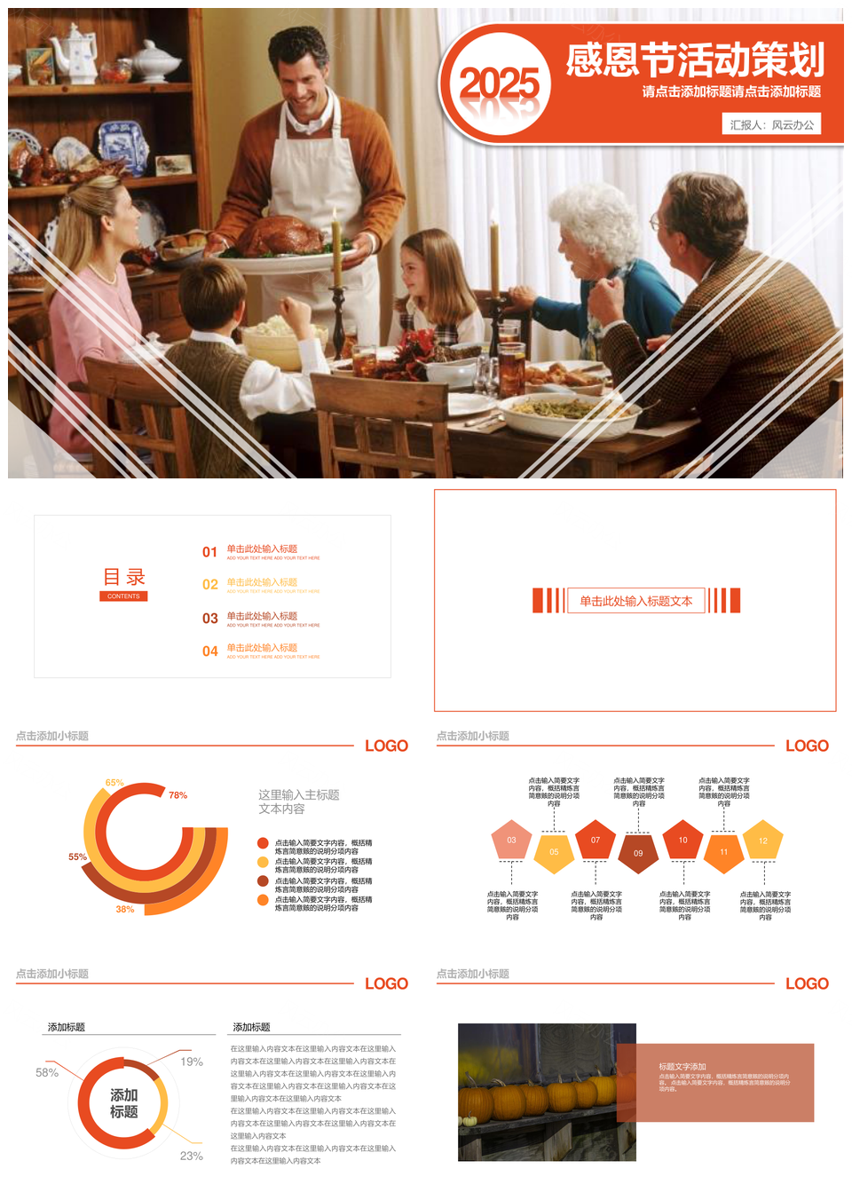 这是一张2025感恩节活动策划PPT模板,包含2025、感恩节、活动策划等主题内容,也可用作2025、感恩节、活动、策划 2025感恩节活动策划、2025感恩节活动、2025感恩节策划、2025活动策划、感恩节活动策划、2025感恩节、2025活动、2025策划、感恩节活动、感恩节策划、活动策划等PPT场景使用。 风云办公提供的2025感恩节活动策划PPT模板,下载格式为pptx,一共30页,作品中文字及图均可以修改和编辑,图片更改请在作品中右键图片并更换,文字修改请直接点击文字进行修改。