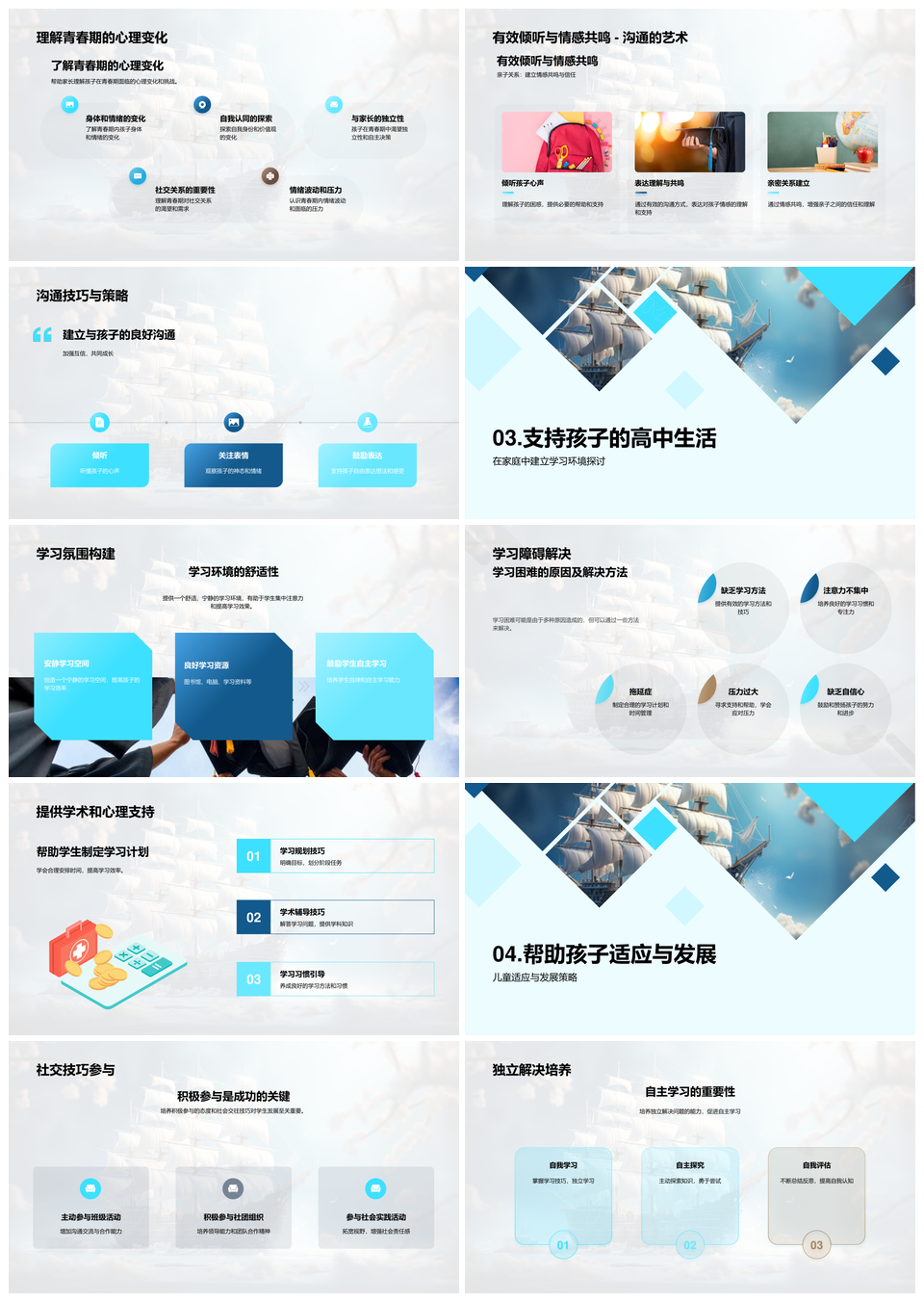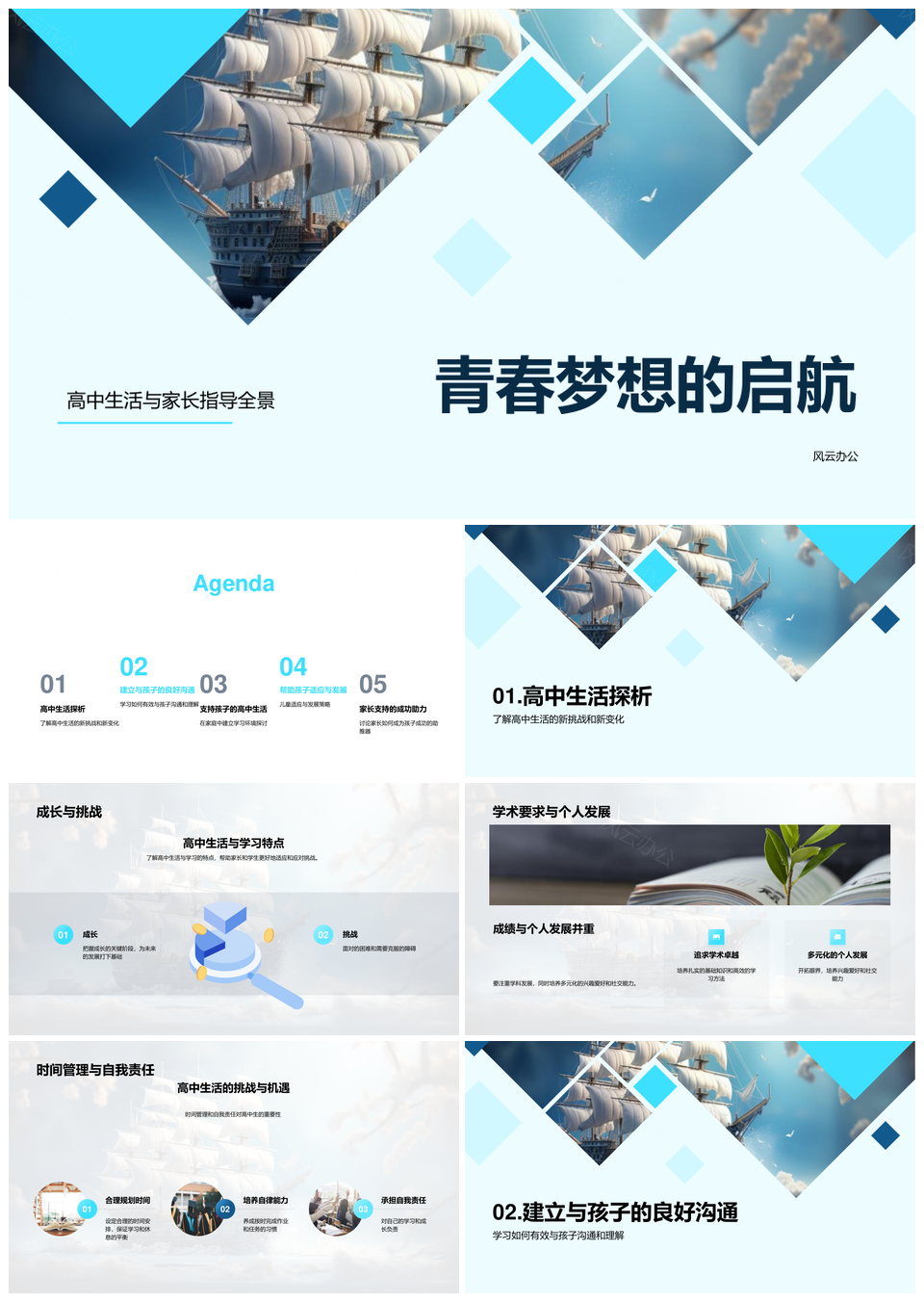 这是一张青春梦想启航高中成长挑战家长指引扬帆PPT模板,包含青春、梦想、启航、高中、成长、挑战、家长、指引、扬帆等主题内容,也可用作青春梦想启航高中、梦想启航高中成长、启航高中成长挑战、高中成长挑战家长、成长挑战家长指引、挑战家长指引扬帆、青春梦想启航成长、梦想启航高中挑战、启航高中家长指引、高中成长挑战扬帆、青春梦想高中成长、梦想成长挑战家长、启航挑战家长指引、高中家长指引扬帆、青春成长挑战指引等PPT场景使用。 风云办公提供的青春梦想启航高中成长挑战家长指引扬帆PPT模板,下载格式为pptx,一共23页,作品中文字及图均可以修改和编辑,图片更改请在作品中右键图片并更换,文字修改请直接点击文字进行修改。
