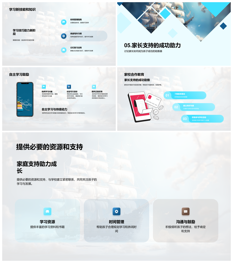 青春梦想启航高中成长挑战家长指引扬帆PPT模板推荐