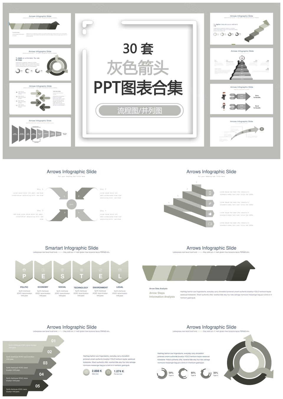灰色箭头PPT模板推荐