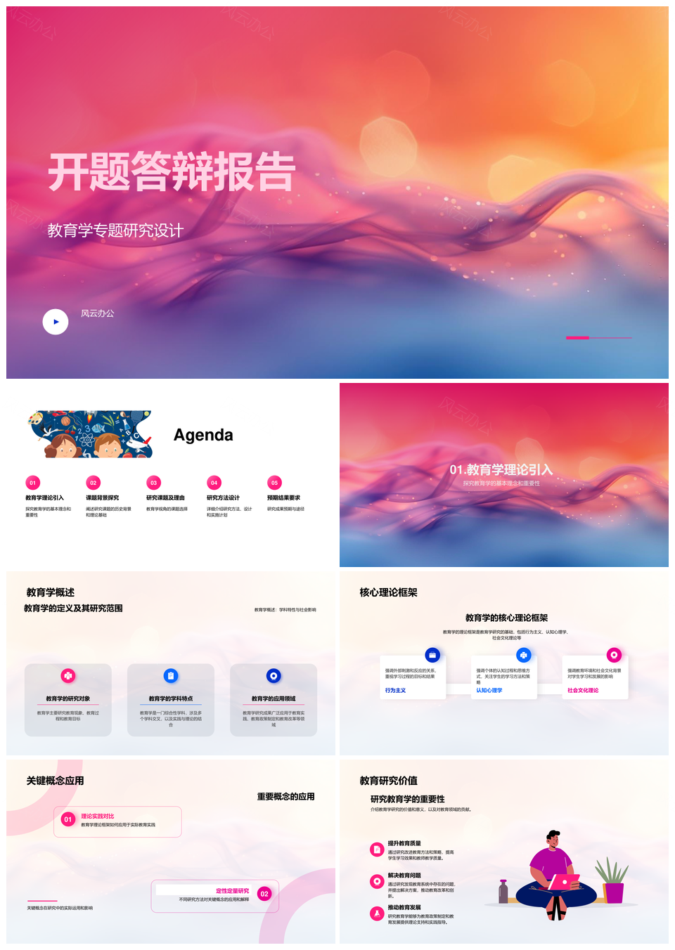 风云办公提供的教育研究开题答辩理论框架与数据分析PPT模板,下载格式为pptx,一共33页,作品中文字及图均可以修改和编辑,图片更改请在作品中右键图片并更换,文字修改请直接点击文字进行修改。