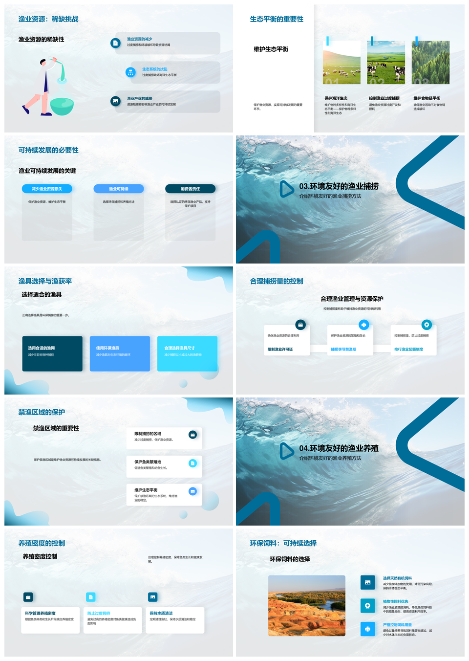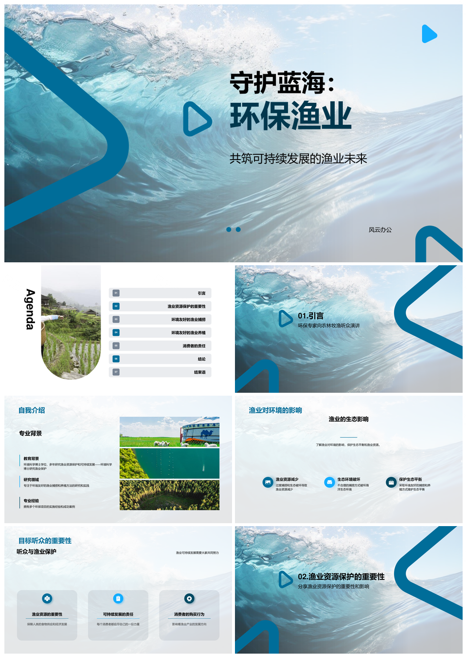 风云办公提供的生态护卫可持续渔业守护海洋资源PPT模板,下载格式为pptx,一共31页,作品中文字及图均可以修改和编辑,图片更改请在作品中右键图片并更换,文字修改请直接点击文字进行修改。