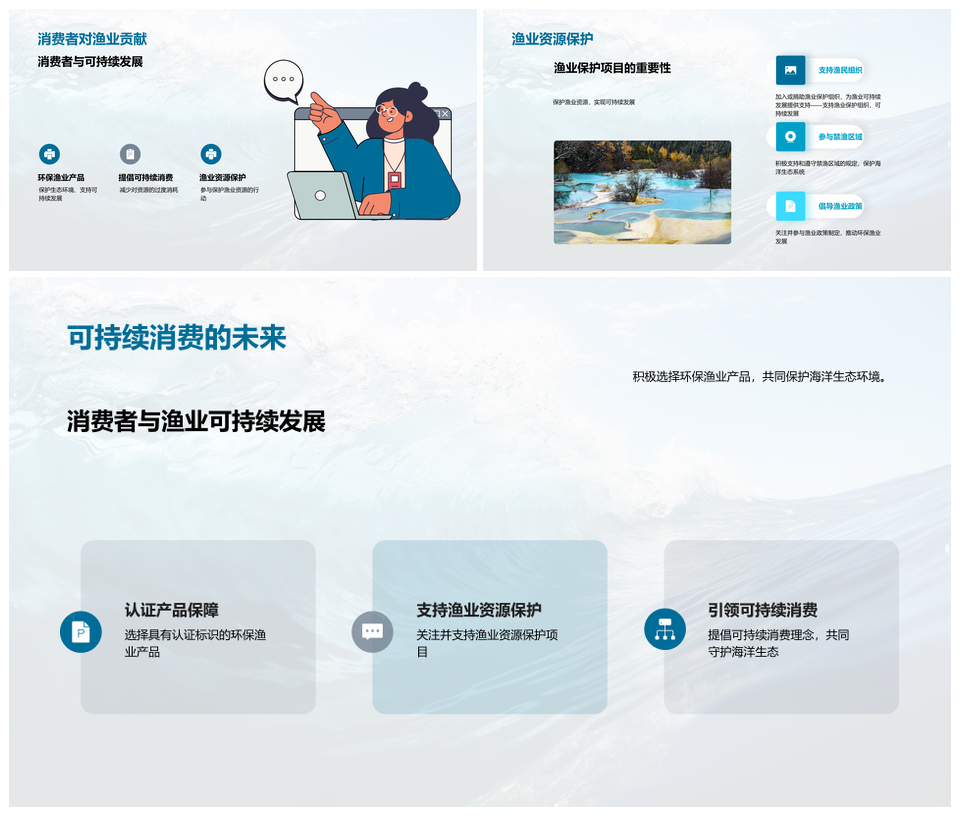 这是一张生态护卫可持续渔业守护海洋资源PPT模板,包含生态、护卫、可持续、渔业、守护、海洋、资源等主题内容,也可用作生态护卫可持续渔业、护卫可持续渔业守护、可持续渔业守护海洋资源、生态护卫守护海洋资源、护卫可持续守护海洋资源、生态可持续渔业守护、护卫渔业守护海洋资源、守护海洋资源生态护卫、护卫守护海洋资源、生态可持续渔业海洋资源、护卫可持续渔业海洋资源、渔业守护海洋资源、可持续渔业海洋资源、生态护卫海洋资源守护、护卫海洋资源可持续等PPT场景使用。