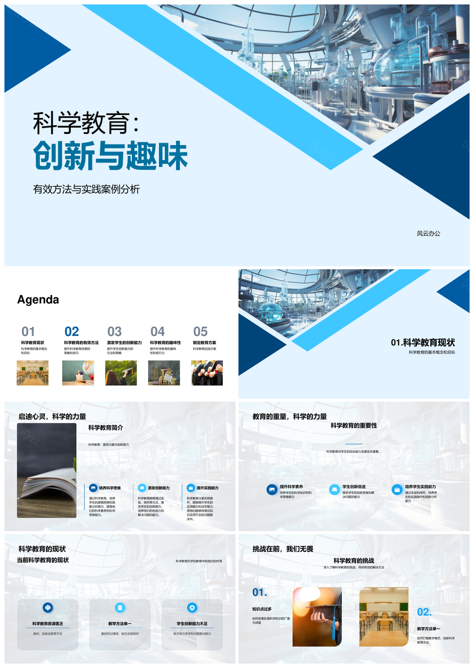 风云办公提供的创新趣味科学教育实验探究实践PPT模板,下载格式为pptx,一共27页,作品中文字及图均可以修改和编辑,图片更改请在作品中右键图片并更换,文字修改请直接点击文字进行修改。