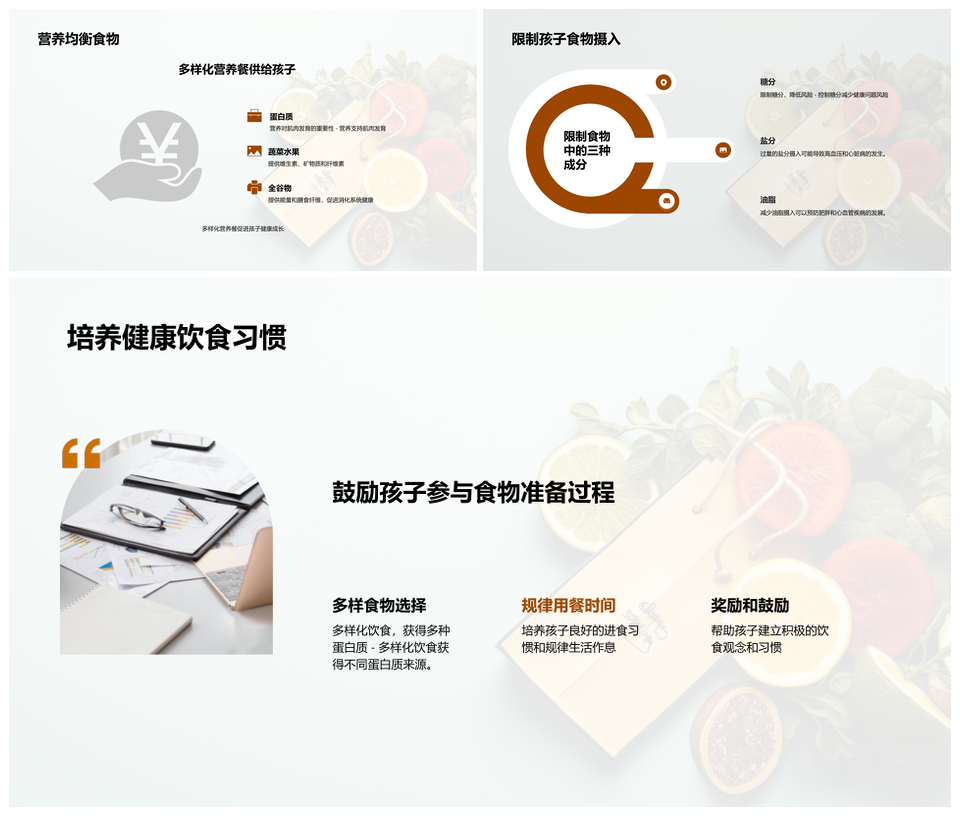 这是一张家长儿童健康饮食营养专家指导教育PPT模板,包含家长、儿童、健康、饮食、营养、专家、指导、教育等主题内容,也可用作家长儿童健康饮食、儿童健康饮食营养、健康饮食营养专家、饮食营养专家指导、营养专家指导教育、儿童健康饮食营养专家、健康饮食营养专家指导、家长儿童健康饮食营养、儿童健康饮食营养专家指导、健康饮食营养专家指导教育、家长儿童健康、儿童健康饮食、健康饮食营养、饮食营养专家、营养专家指导、专家指导教育等PPT场景使用。