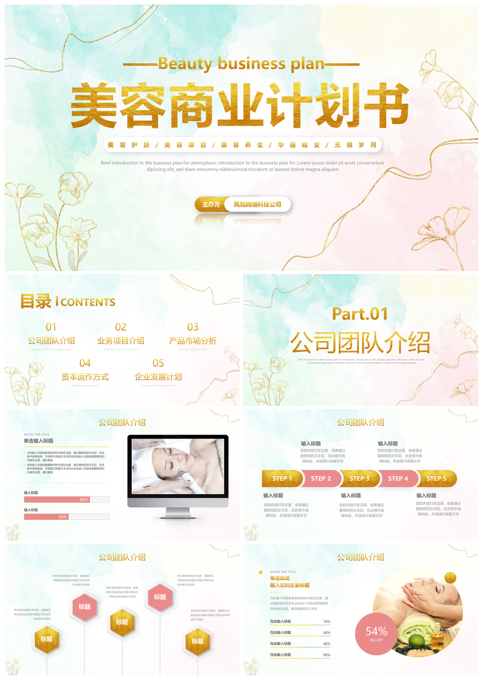 2025鎏金花卉清新线条医美招商商业计划书PPT模板