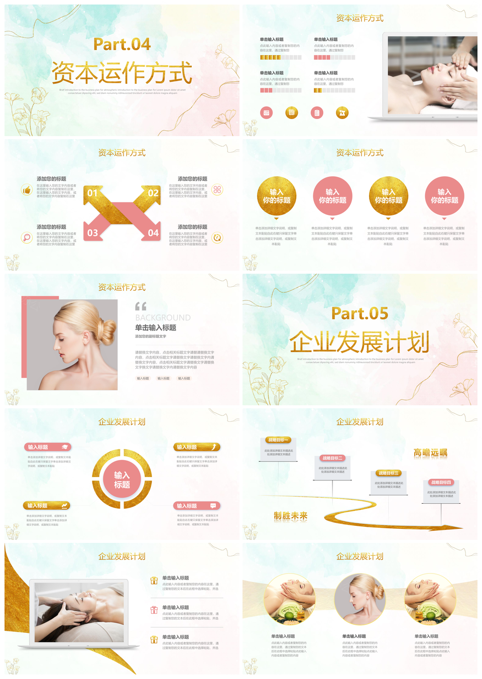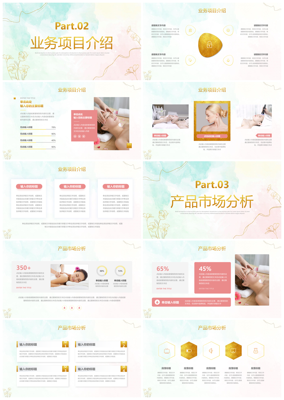 2025鎏金花卉清新线条医美招商商业计划书PPT模板推荐