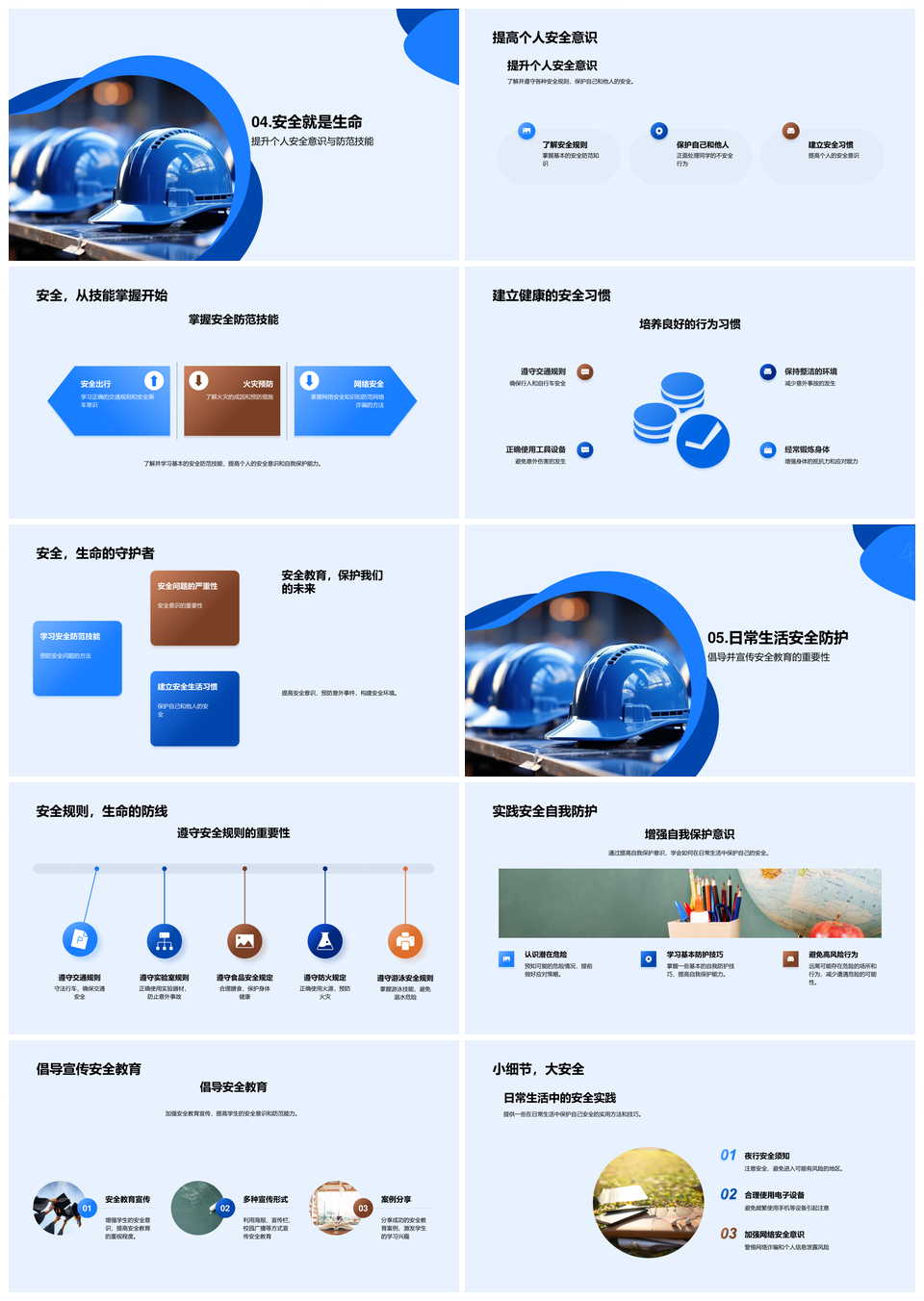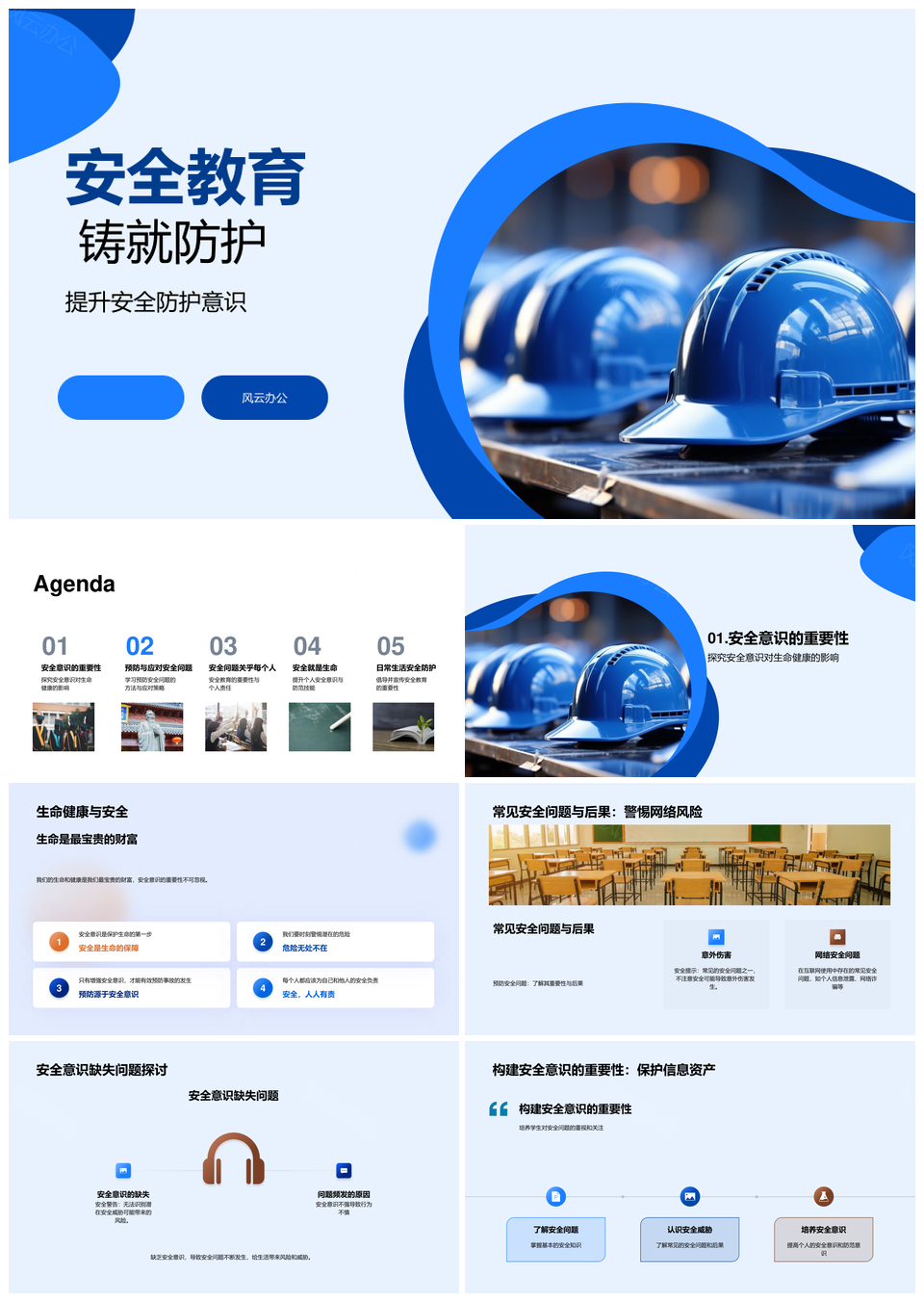 风云办公提供的安全教育筑牢生命健康安全防护PPT模板,下载格式为pptx,一共28页,作品中文字及图均可以修改和编辑,图片更改请在作品中右键图片并更换,文字修改请直接点击文字进行修改。