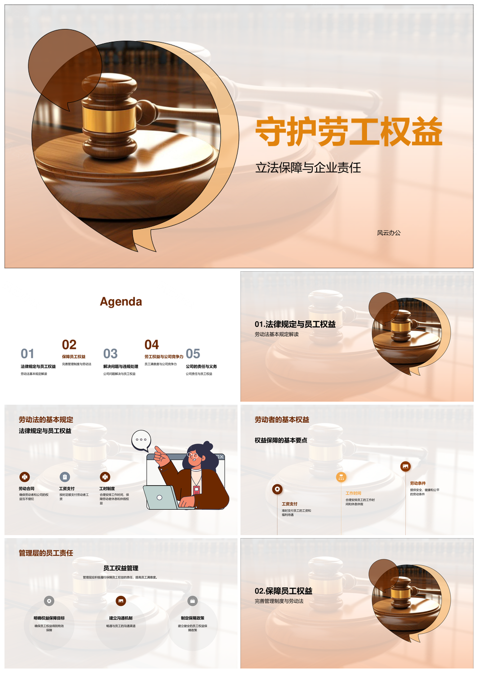 风云办公提供的劳动法立法保障劳工权益企业责任PPT模板,下载格式为pptx,一共23页,作品中文字及图均可以修改和编辑,图片更改请在作品中右键图片并更换,文字修改请直接点击文字进行修改。