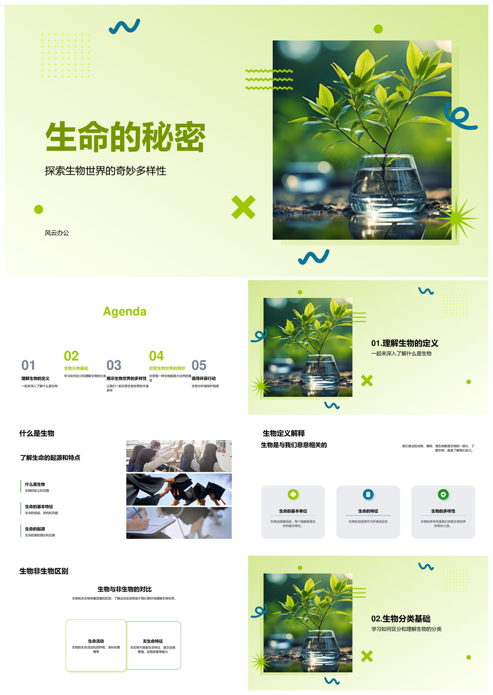 风云办公提供的生物世界生命分类显微环境探秘PPT模板,下载格式为pptx,一共23页,作品中文字及图均可以修改和编辑,图片更改请在作品中右键图片并更换,文字修改请直接点击文字进行修改。