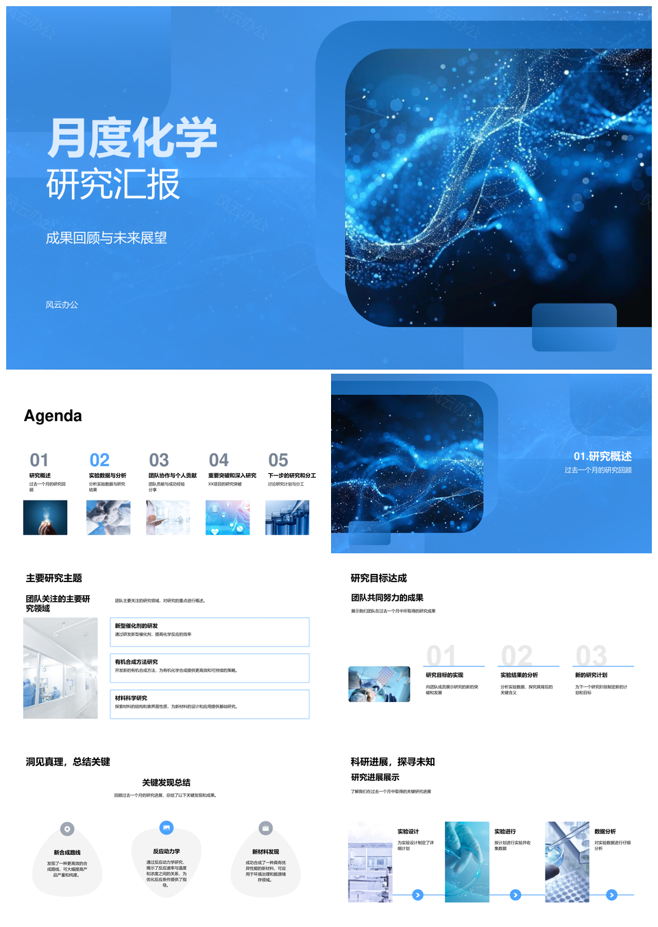 化学研究月度主题目标发现进展数据分析深入计划PPT模板推荐