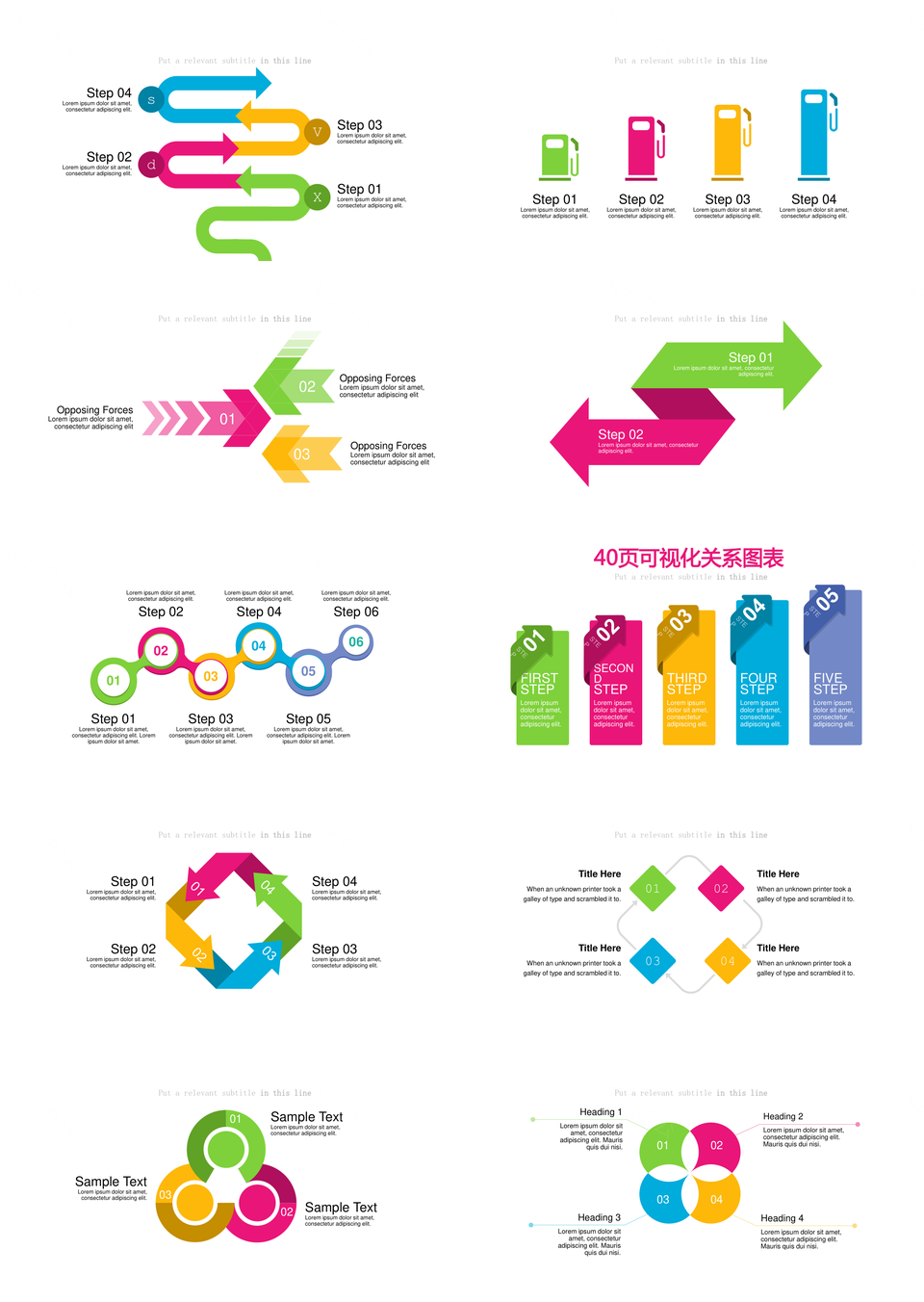 这是一张亮色系并列关系并列关系递进关系PPT图表合集,包含亮色系、并列关系、递进关系、图表合集等主题内容,也可用作亮色系、并列关系、递进关系、PPT、图表、合集
