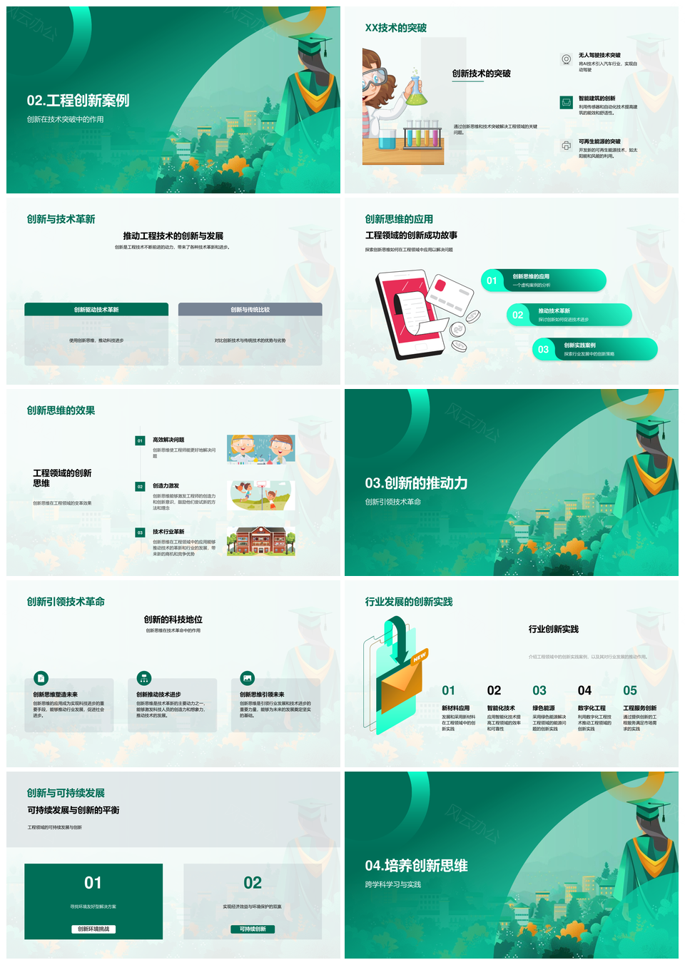 工程创新思维技术革新跨学科可持续发展PPT模板推荐