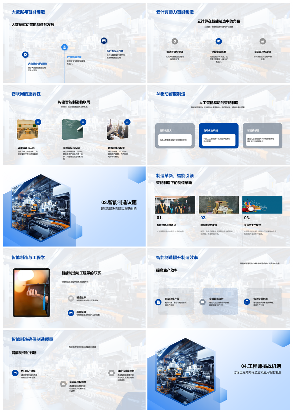风云办公提供的智能制造工程学与数智技术融合应用PPT模板,下载格式为pptx,一共26页,作品中文字及图均可以修改和编辑,图片更改请在作品中右键图片并更换,文字修改请直接点击文字进行修改。