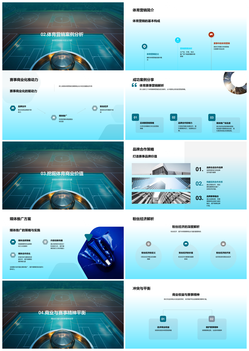 这是一张全球体育赛事商业化挑战机遇与营销模式PPT模板,包含全球、体育赛事、商业化、挑战、机遇、营销模式等主题内容,也可用作全球体育赛事商业化挑战、全球体育赛事商业化机遇、体育赛事商业化挑战机遇、商业化挑战机遇营销模式、全球体育赛事挑战、体育赛事商业化机遇、赛事商业化挑战营销、挑战机遇营销模式、全球体育赛事、体育赛事商业化、赛事商业化挑战、商业化挑战机遇、挑战机遇营销、机遇营销模式、全球体育营销模式等PPT场景使用。 风云办公提供的全球体育赛事商业化挑战机遇与营销模式PPT模板,下载格式为pptx,一共24页,作品中文字及图均可以修改和编辑,图片更改请在作品中右键图片并更换,文字修改请直接点击文字进行修改。