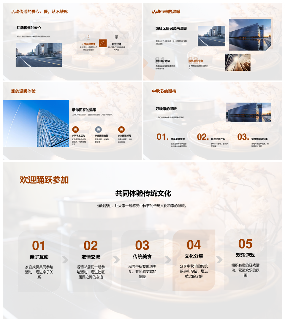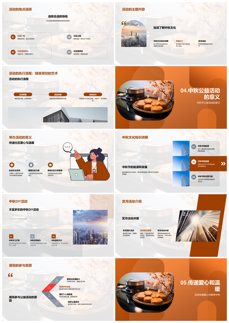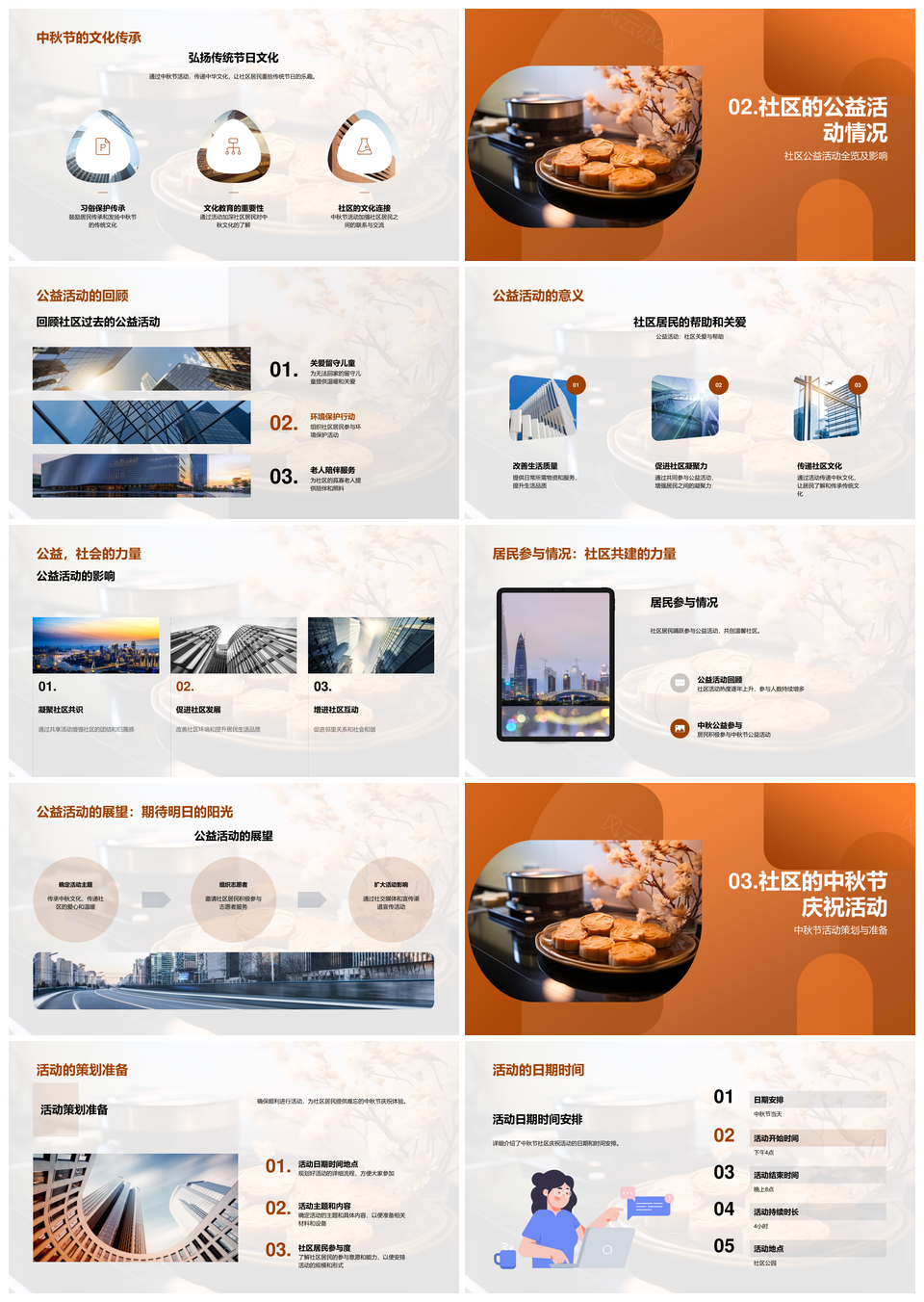 风云办公提供的中秋公益融情传文化社区暖爱月饼PPT模板,下载格式为pptx,一共33页,作品中文字及图均可以修改和编辑,图片更改请在作品中右键图片并更换,文字修改请直接点击文字进行修改。