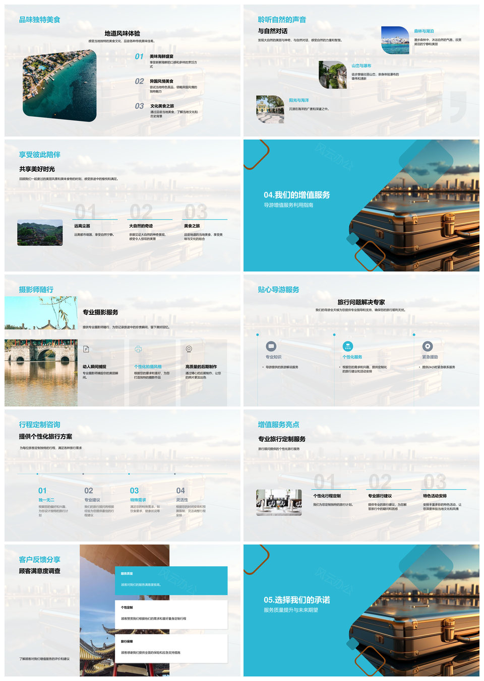 这是一张旅行顾问定制摄影美食线路客户故事手提箱PPT模板,包含旅行顾问、定制、摄影、美食、线路、客户、故事、手提箱等主题内容,也可用作旅行顾问定制摄影美食线路、定制摄影美食线路客户故事、摄影美食线路客户故事手提箱、旅行顾问定制摄影线路、旅行顾问定制美食线路客户、定制美食线路客户故事、旅行顾问摄影美食客户、摄影美食客户故事手提箱、旅行顾问客户故事手提箱、定制线路客户故事、摄影线路手提箱、美食线路客户、旅行顾问故事、定制客户故事、美食故事手提箱等PPT场景使用。 风云办公提供的旅行顾问定制摄影美食线路客户故事手提箱PPT模板,下载格式为pptx,一共33页,作品中文字及图均可以修改和编辑,图片更改请在作品中右键图片并更换,文字修改请直接点击文字进行修改。