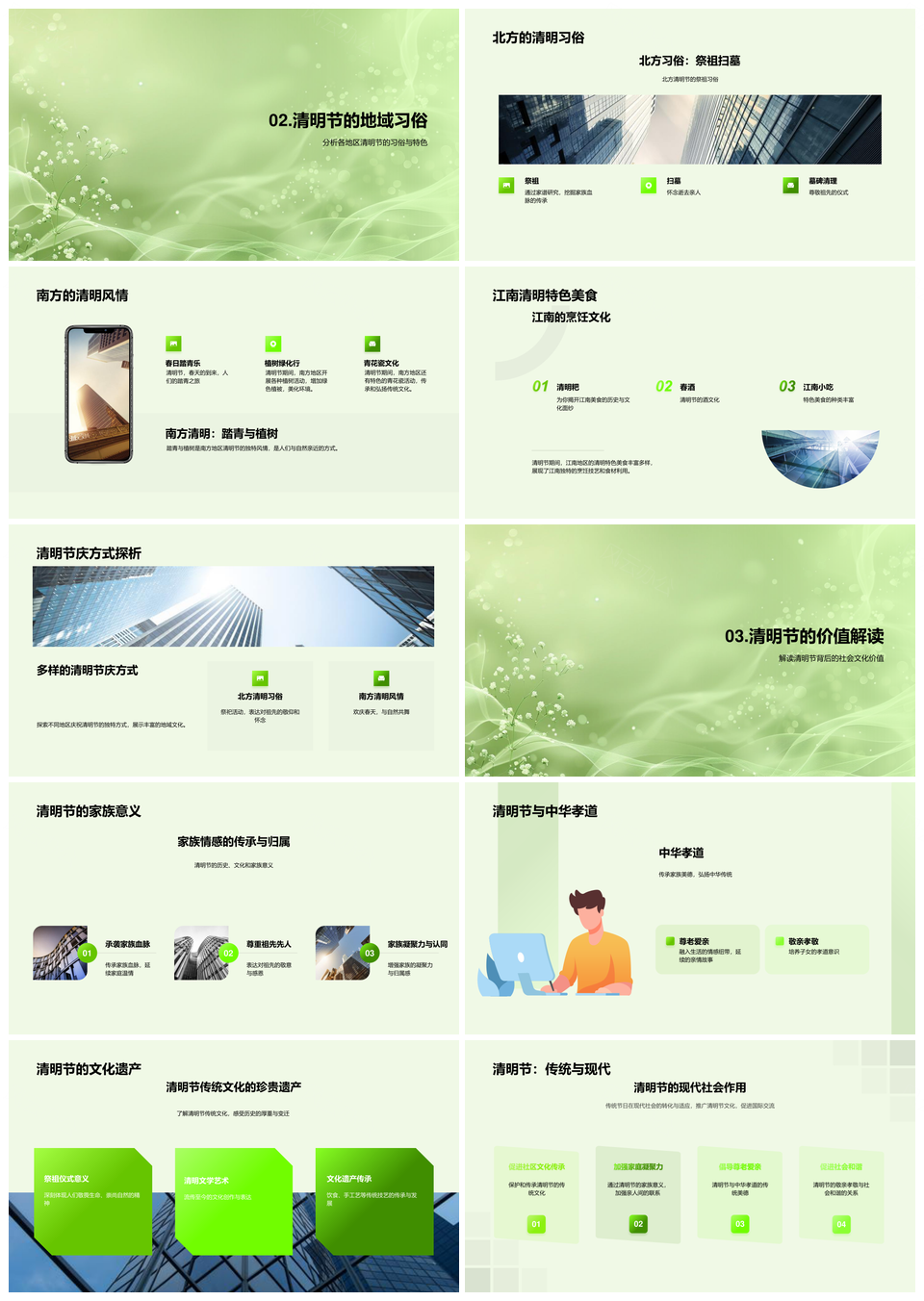 2025清明寒食起源传承现代演变习俗美德PPT模板推荐