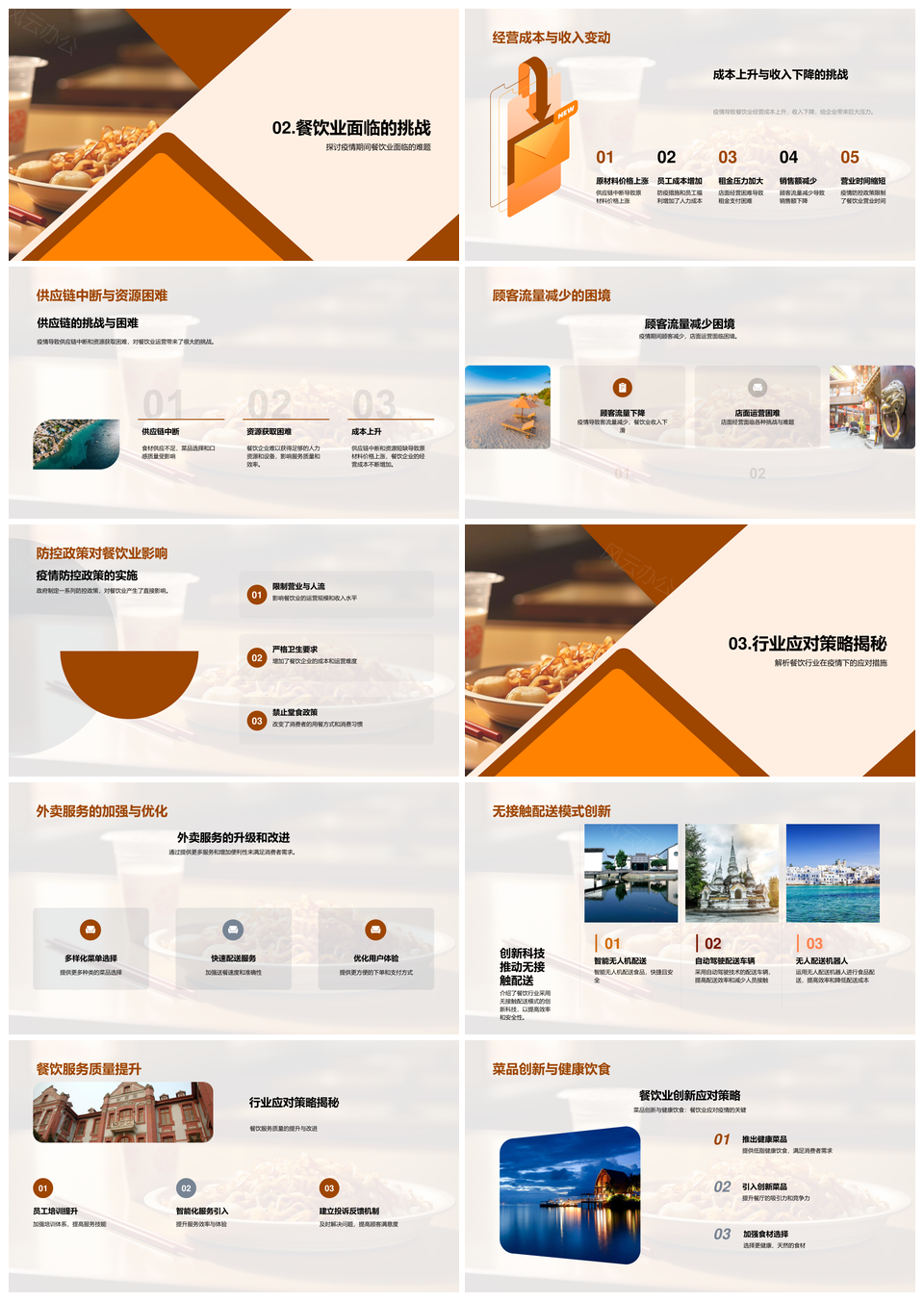 风云办公提供的餐饮业疫情应对策略与消费转型PPT模板,下载格式为pptx,一共28页,作品中文字及图均可以修改和编辑,图片更改请在作品中右键图片并更换,文字修改请直接点击文字进行修改。